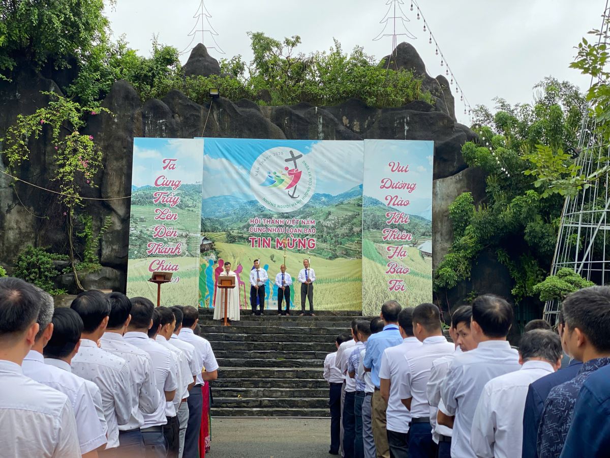 WGPHH – Sáng thứ Tư, ngày 01.10.2025, khoảng 240 anh chị em tín hữu thuộc các giới Doanh trí, Y tế và Cựu Chủng sinh – Tu sinh trong toàn Giáo phận Hưng Hóa đã quy tụ về Nhà thờ Chính tòa Sơn Lộc để hành hương Năm Thánh.