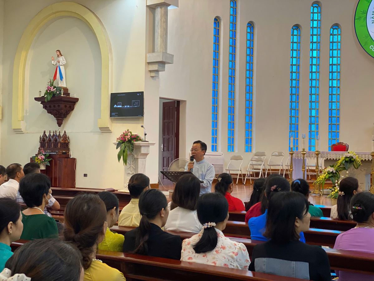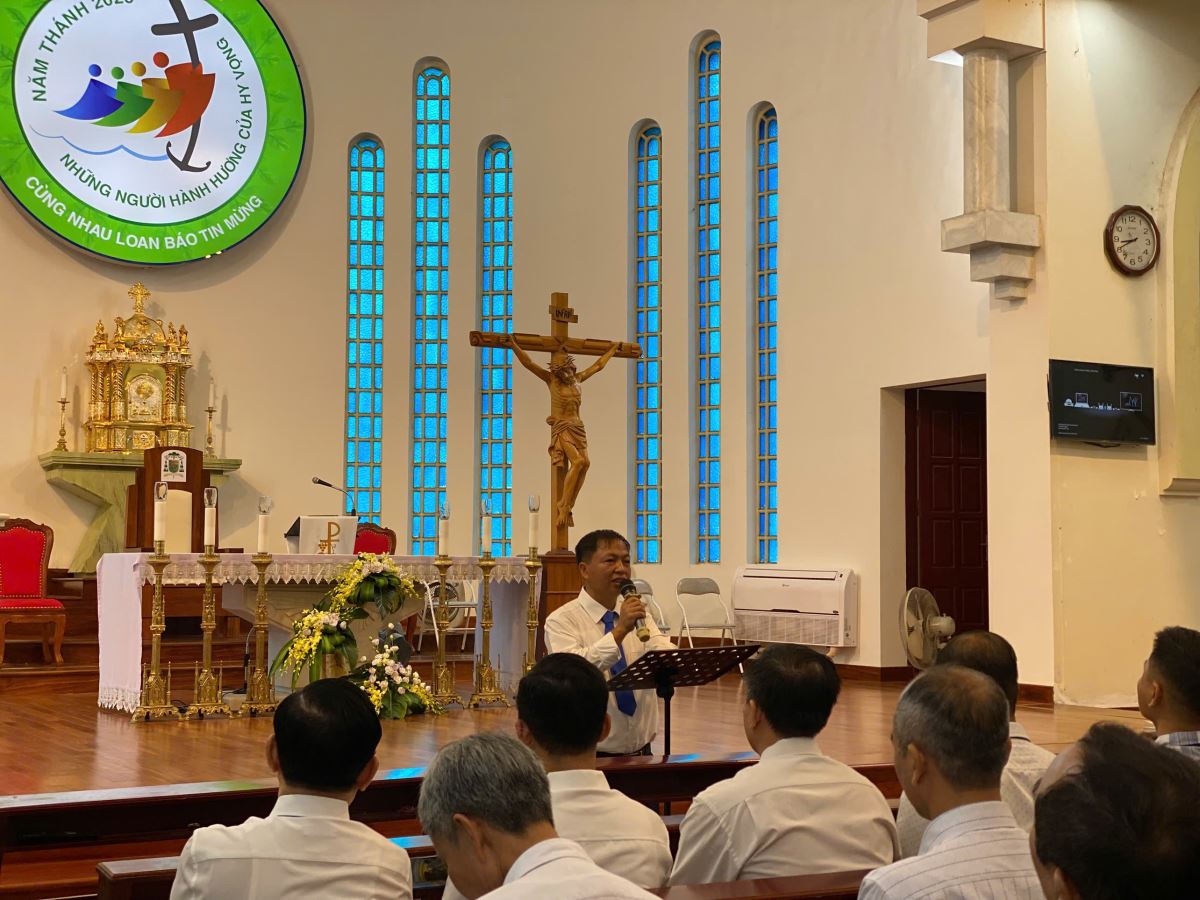 Đúng 08g45, cha Giuse Nguyễn Văn Thành – Chủ tịch Ủy ban Loan báo Tin mừng Giáo phận (UBLBTM) chia sẻ sứ điệp Ngày Thế giới Truyền giáo 2025 của Đức cố Giáo hoàng Phanxicô, với chủ đề: “Những người truyền giáo của niềm Hy vọng giữa muôn dân.”