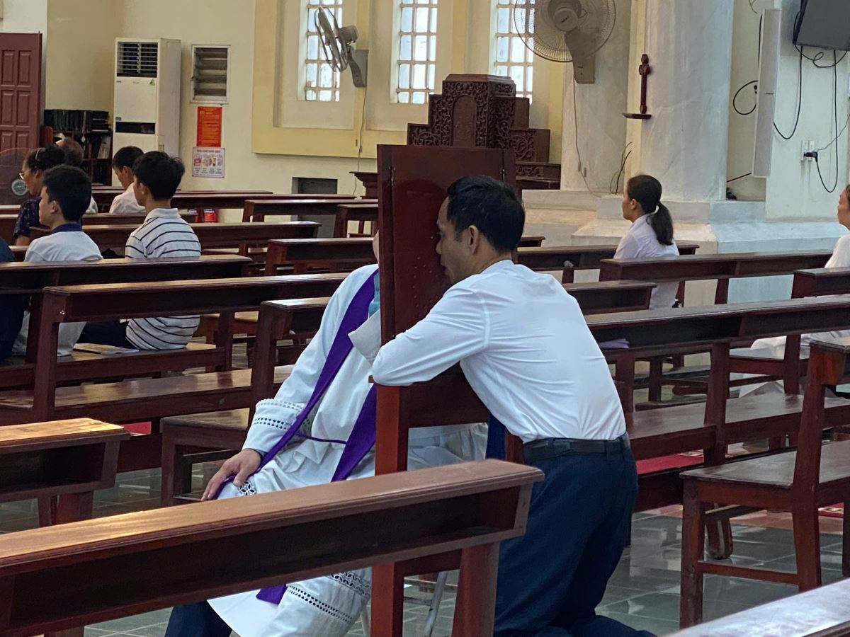 Trong khi cha chia sẻ, quý cha trong giáo hạt cũng hiện diện tại các tòa giải tội, giúp cộng đoàn có cơ hội giao hòa với Chúa và làm mới lại tâm hồn mình.