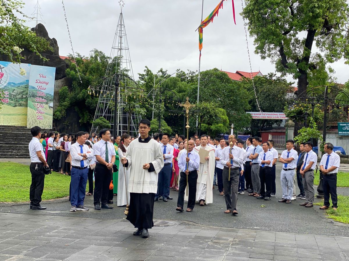 Thánh lễ kính thánh nữ Têrêsa Hài đồng Giêsu được cử hành lúc 10g10 do Đức cha Phaolô Nguyễn Quang Đĩnh – Giám mục phụ tá Giáo phận chủ tế, cùng đồng tế có cha Giuse Nguyễn Ngọc Ngoạn - Đặc trách các Hội đoàn trong Giáo phận, cha Giuse Nguyễn Văn Thành và quý cha trong giáo hạt Sơn Tây.