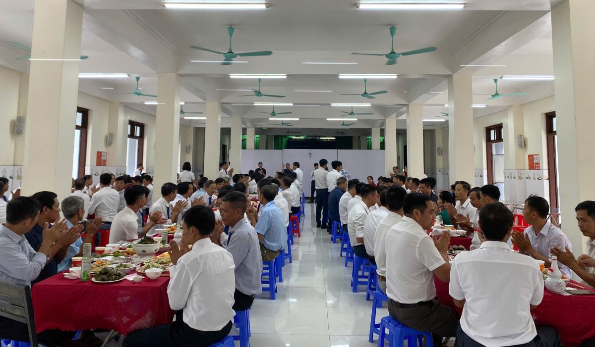 Sau đó, cộng đoàn cùng chia sẻ bữa cơm huynh đệ tại hội trường Hội dòng Mến Thánh Giá Hưng Hóa, khép lại ngày hành hương trong niềm vui hiệp thông và tình thân ái.