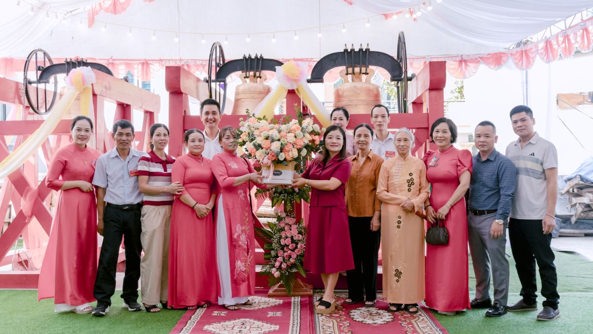 Đến 7g30, đại diện chính quyền, quý ân nhân gần xa cùng các đoàn khách từ nhiều giáo xứ, giáo họ trong Giáo phận lần lượt hiện diện. Những khoảnh khắc gặp gỡ tay bắt mặt mừng, cùng những bó hoa tươi thắm trao tặng, đã làm cho bầu khí thêm phần hân hoan và ấm áp tình hiệp thông, góp phần nhân lên niềm vui cho ngày mừng lễ quan thầy cũng như nghi thức làm phép chuông trọng thể.