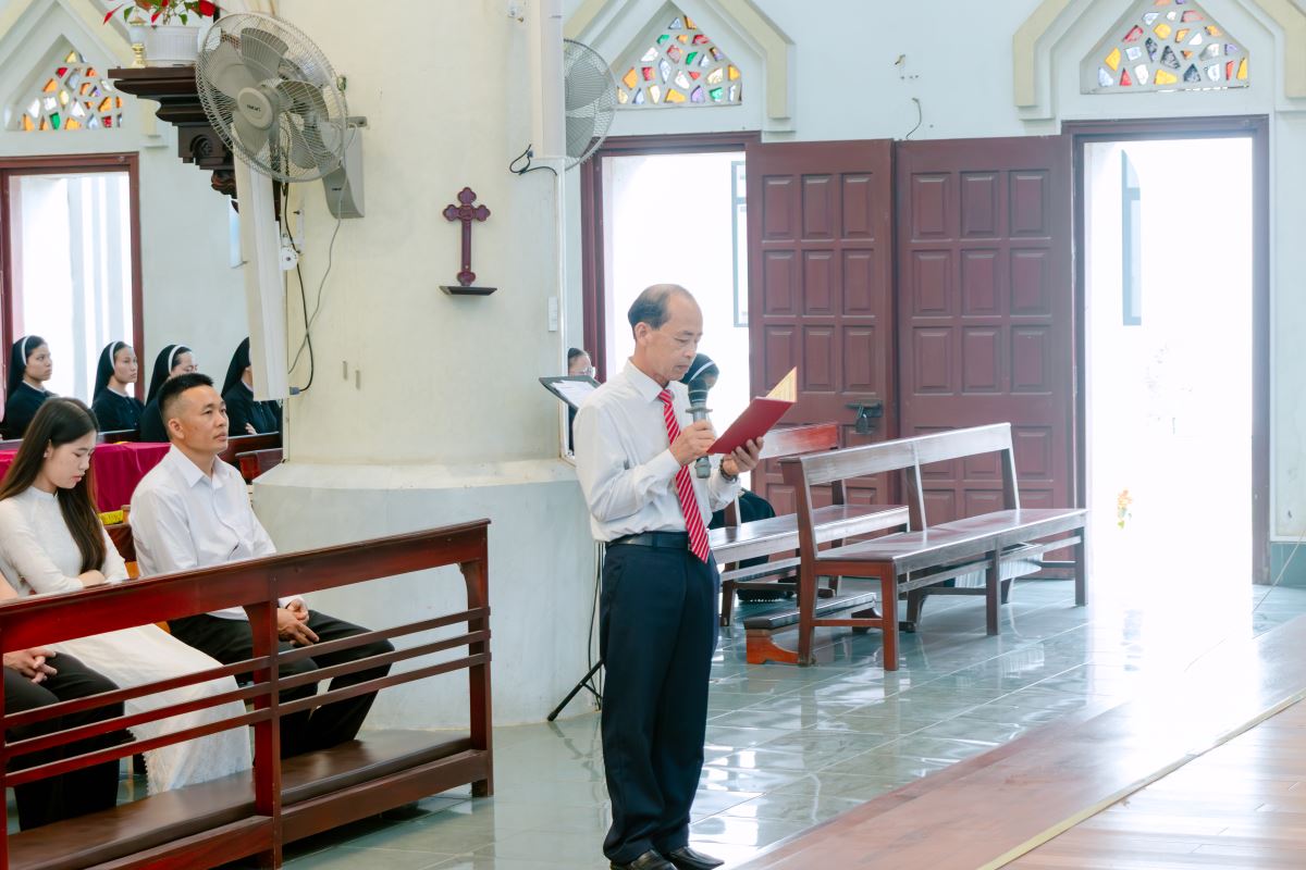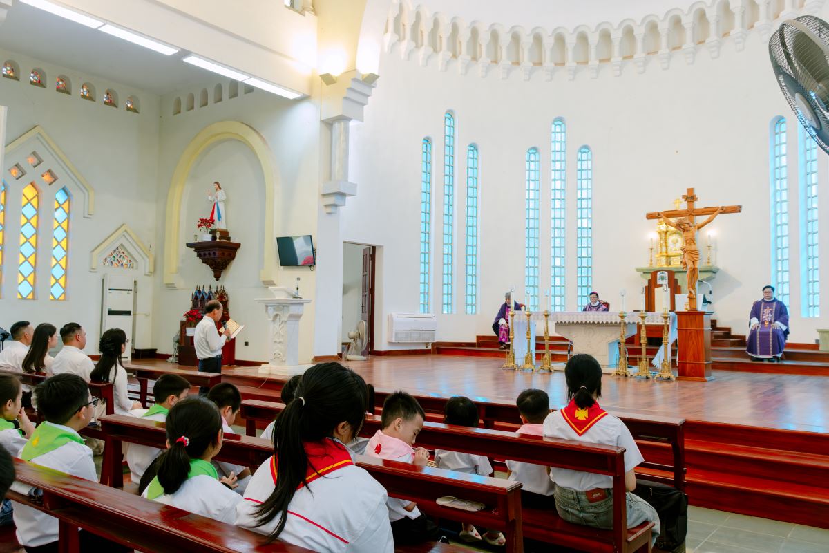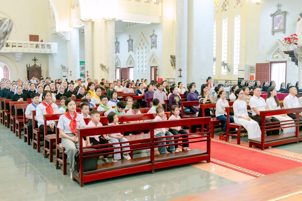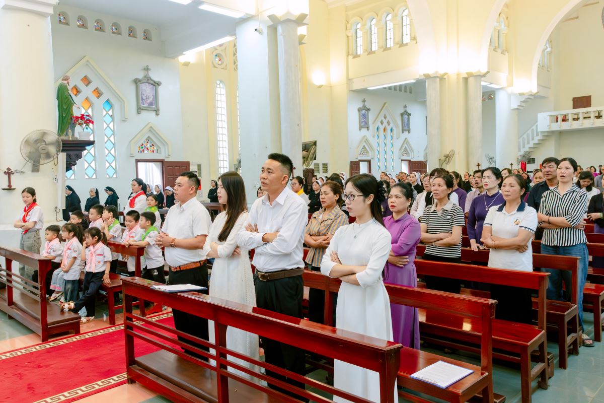 Thánh lễ được cử hành lúc 09g40 do Đức cha phụ tá Phaolô Nguyễn Quang Đĩnh chủ tế. Đồng tế với ngài có cha xứ và cha phó giáo xứ Chính Tòa. Hiệp dâng Thánh lễ còn có quý thầy, quý dì và cộng đoàn dân Chúa trong giáo xứ.