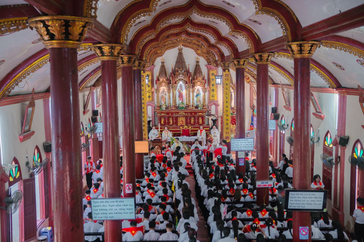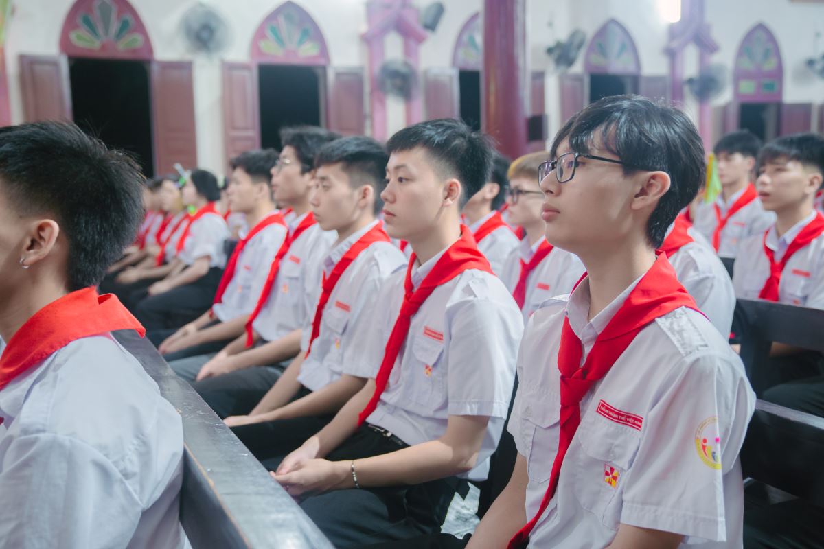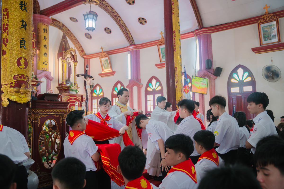 Trong bầu khí trang nghiêm, khoảnh khắc từng bạn tiến bước lên lãnh nhận chiếc khăn huynh trưởng - biểu tượng cho tinh thần trách nhiệm, phục vụ và dấn thân đã ghi dấu một cột mốc không thể phai trong hành trình trưởng thành và phụng sự của người Huynh Trưởng Thiếu Nhi Thánh Thể.