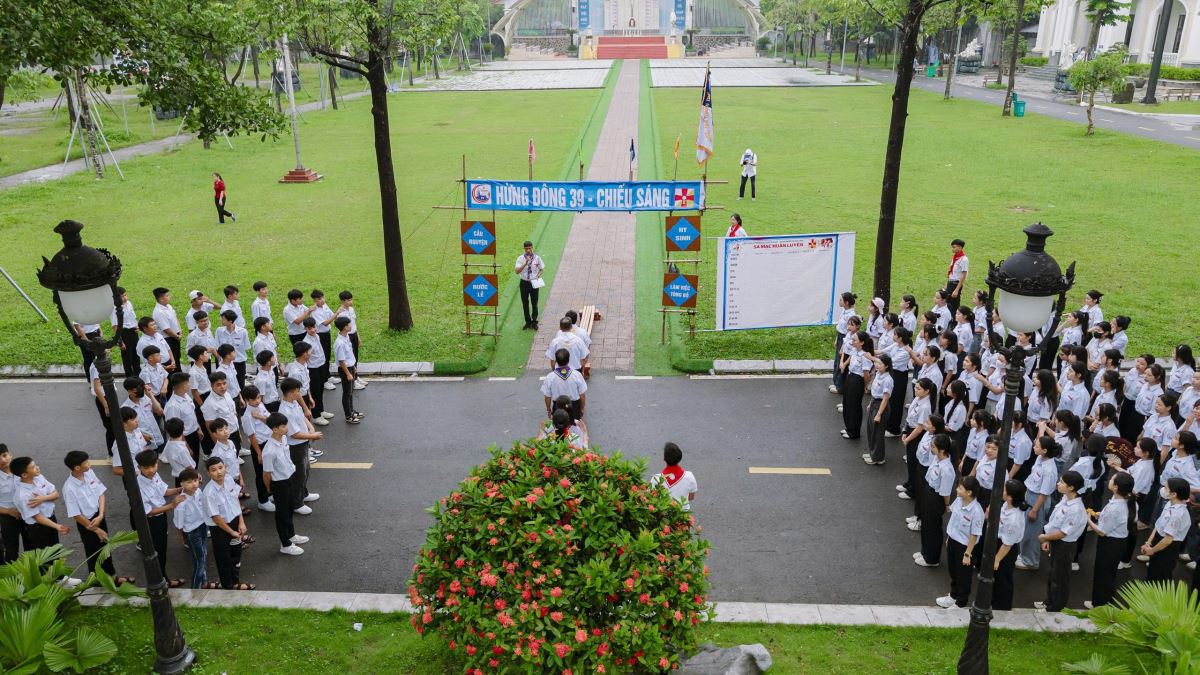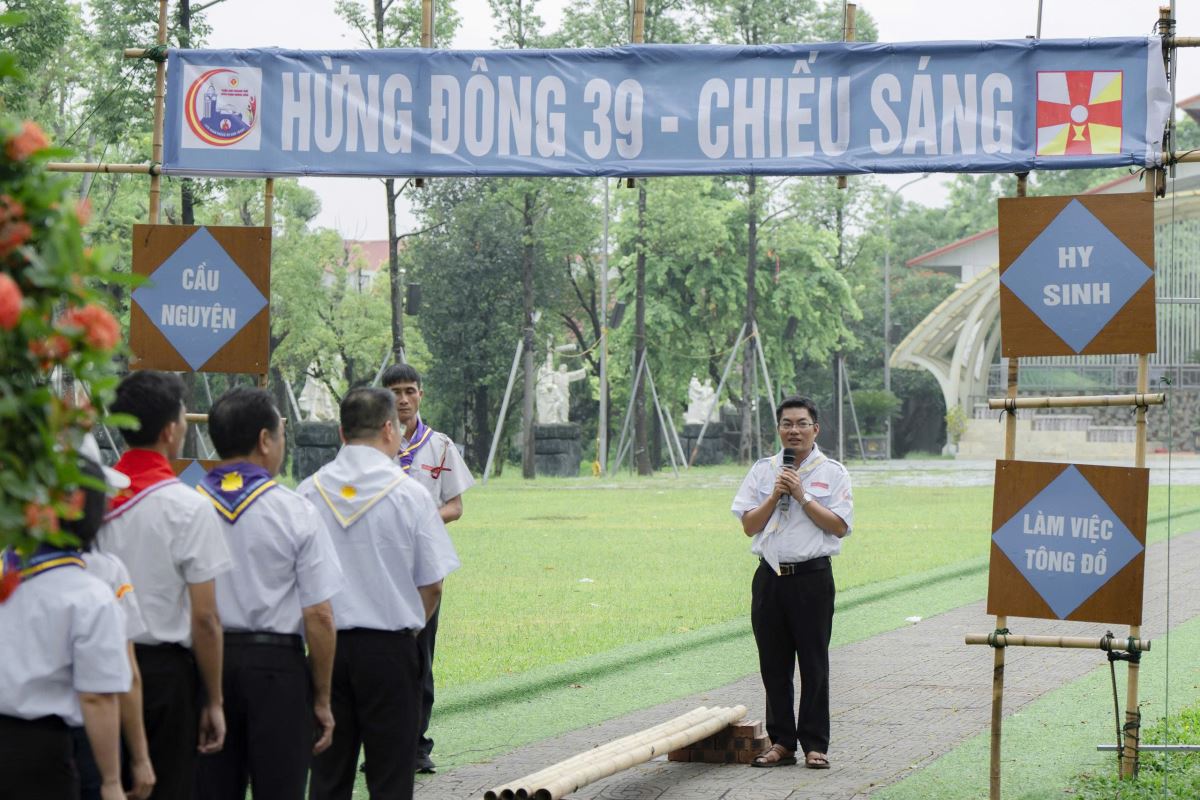 "Chiếu sáng". Đồng hành với sa mạc có cha Sa mạc trưởng (SMT) Phêrô Tạ Duy Tài, cha Tuyên úy sa mạc Giuse Đỗ Văn Trường, quý trưởng trong Ban Huấn luyện, quý trưởng trong Ban Điều hành Hiệp đoàn và 115 sa mạc sinh (SMS) đến từ các giáo xứ trong giáo hạt Đông Nam Phú Thọ.