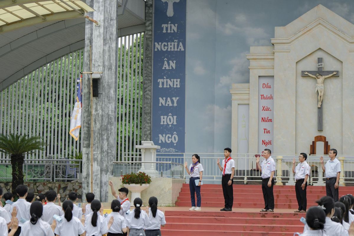 Trong buổi chào cờ khai mạc sa mạc, Cha SMT mời gọi các SMS mỗi người hãy hy sinh thời giờ, học hỏi và trau dồi kiến thức về phong trào Thiếu Nhi Thánh Thể (TNTT) để làm hành trang cho việc phục vụ giáo xứ và giáo hội, đặc biệt là trong năm thánh