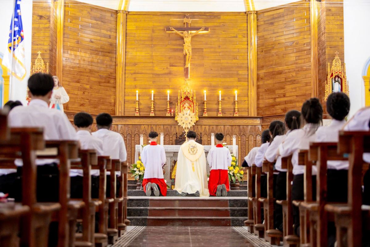 Ngay sau đó, cả sa mạc cùng bước vào Giờ Chầu Thánh Thể trọng thể – giây phút linh thiêng giúp các bạn kín múc sức mạnh từ Chúa Giêsu Thánh Thể, khởi đầu một hành trình rèn luyện với niềm tin tưởng và phó thác.