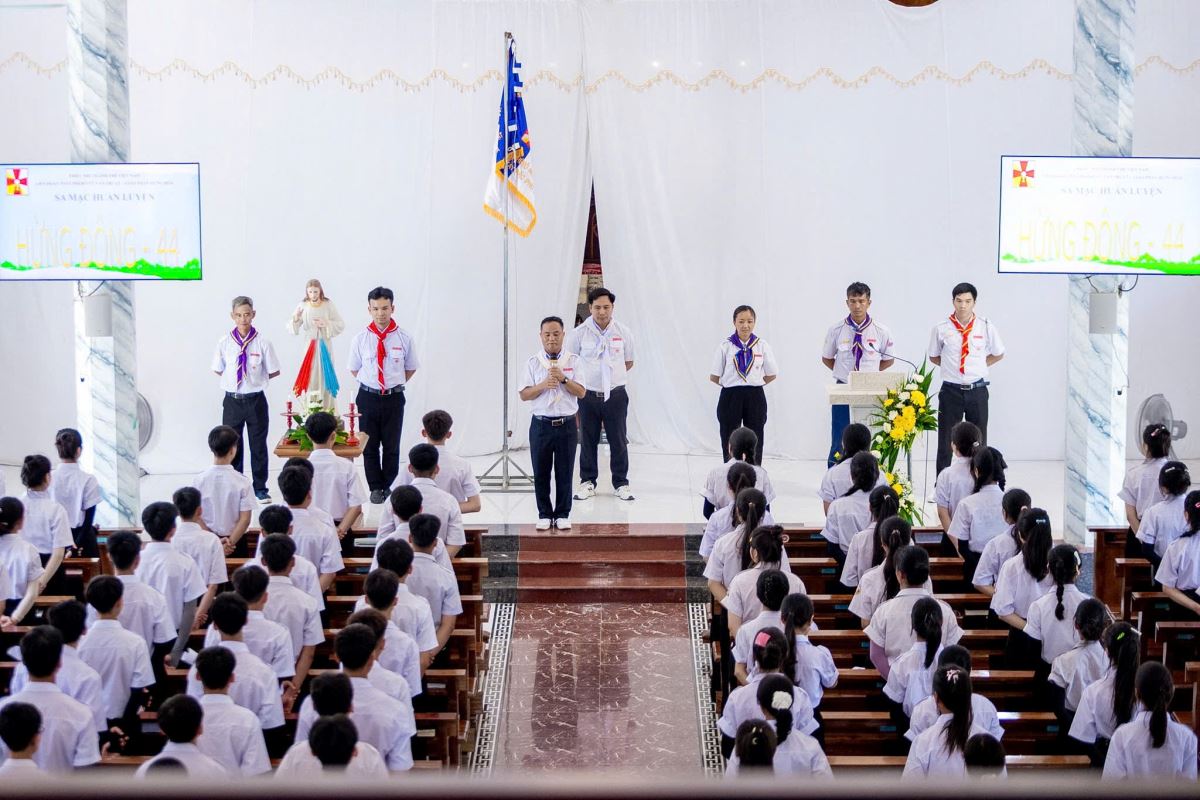 WGPHH - Sáng ngày 08/7/2025, bầu khí tại giáo xứ Mộ Xuân rộn ràng khi 217 sa mạc sinh trong giáo hạt Tây Bắc Phú Thọ quy tụ về tham dự Khóa Huấn Luyện Dự Trưởng Hừng Đông 44 do Hiệp đoàn Thiếu Nhi Thánh Thể giáo hạt tổ chức. Đây là dịp quý báu để các bạn trẻ được huấn luyện, đào tạo và trang bị những kiến thức – kỹ năng cần thiết cho hành trình phục vụ các em thiếu nhi trong sứ vụ Tông đồ của mình.