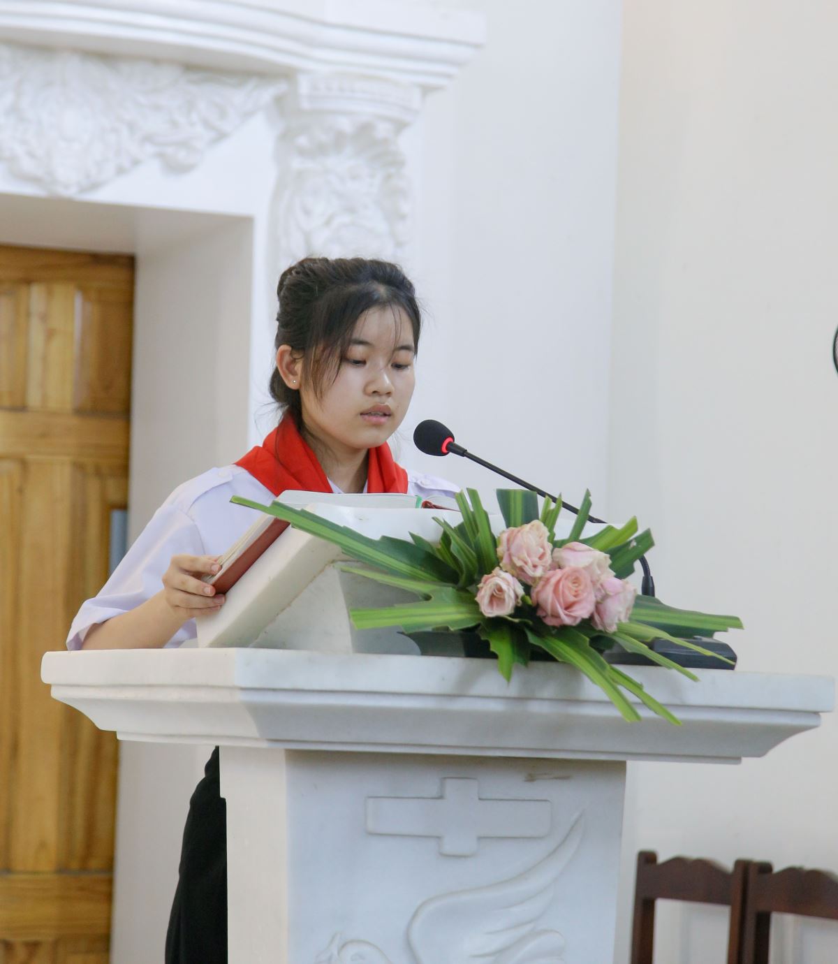Sau nghi thức chào cờ, cha Sa mạc trưởng Gioan Vũ Ân có lời phát biểu và chính thức tuyên bố khai mạc Sa mạc huấn luyện Horeb 46 với khẩu hiệu: "Vươn lên". Cha Sa mạc trưởng Gioan Vũ Ân phát biểu và tuyên bố khai mạc |