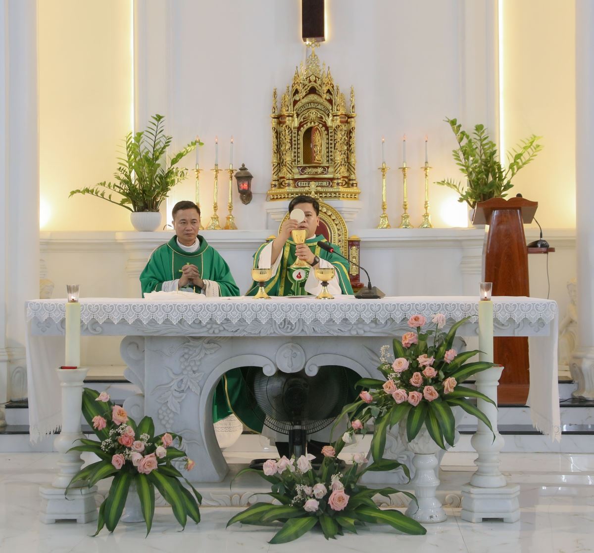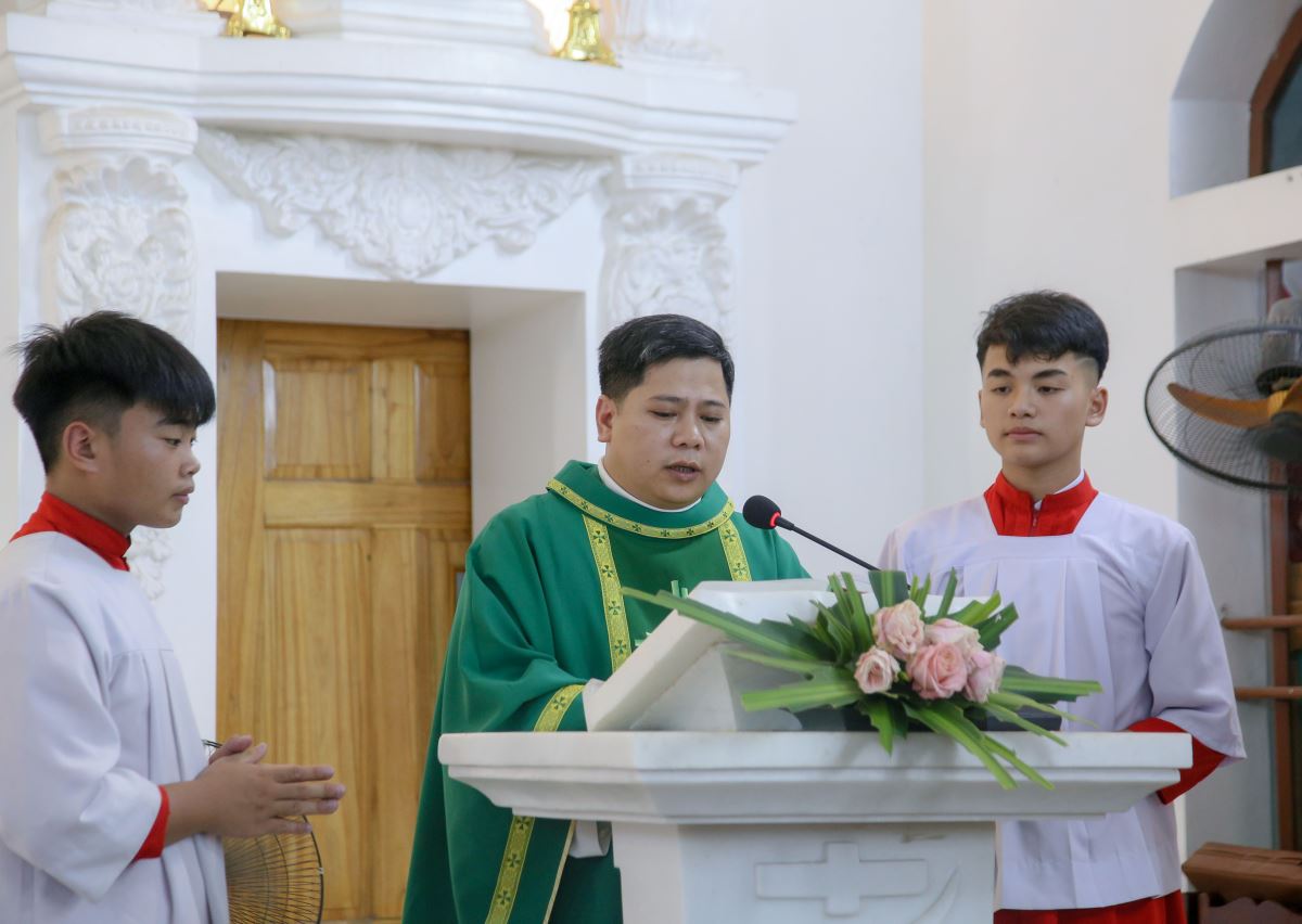 Đỉnh cao của ngày đầu tiên trong sa mạc huấn luyện này chính là Thánh lễ khai mạc, được cử hành lúc 19g30. Thánh lễ do cha Sa mạc trưởng Gioan Vũ Ân chủ tế. Đồng tế trong Thánh lễ có cha Tuyên úy sa mạc Giuse Lâm Văn Việt.