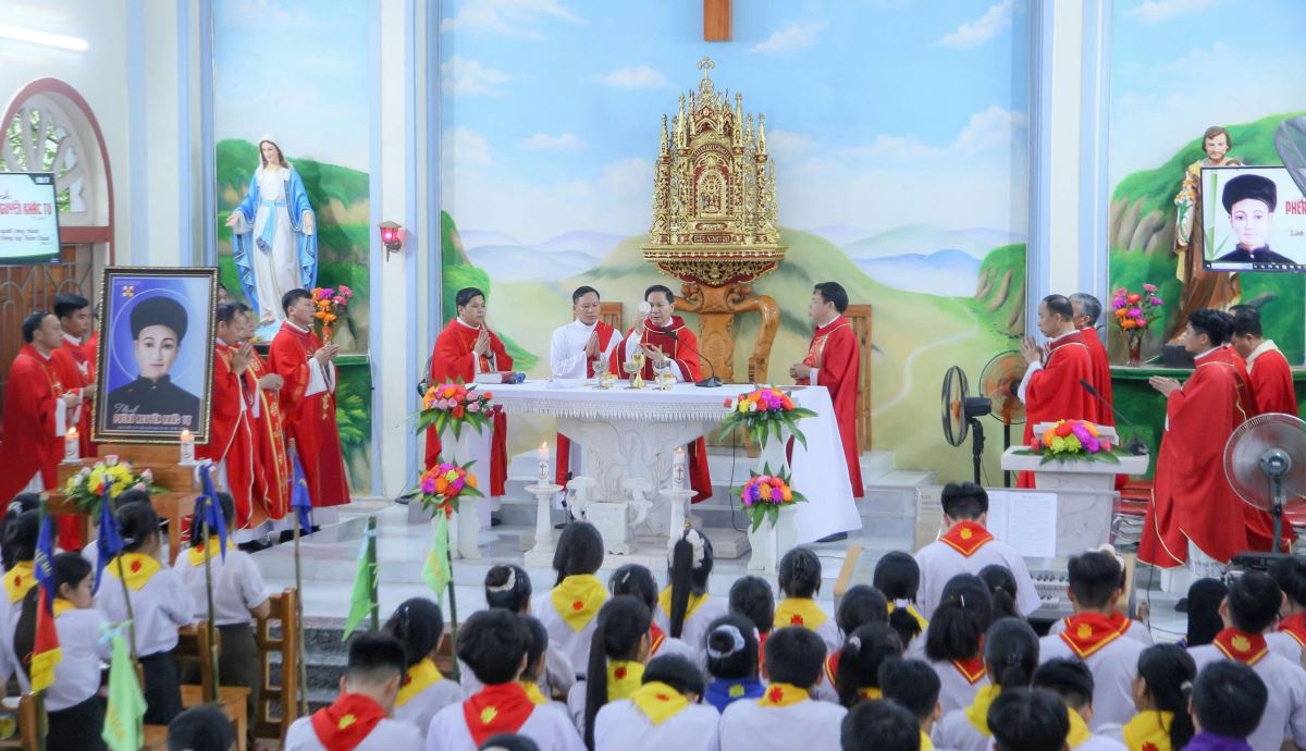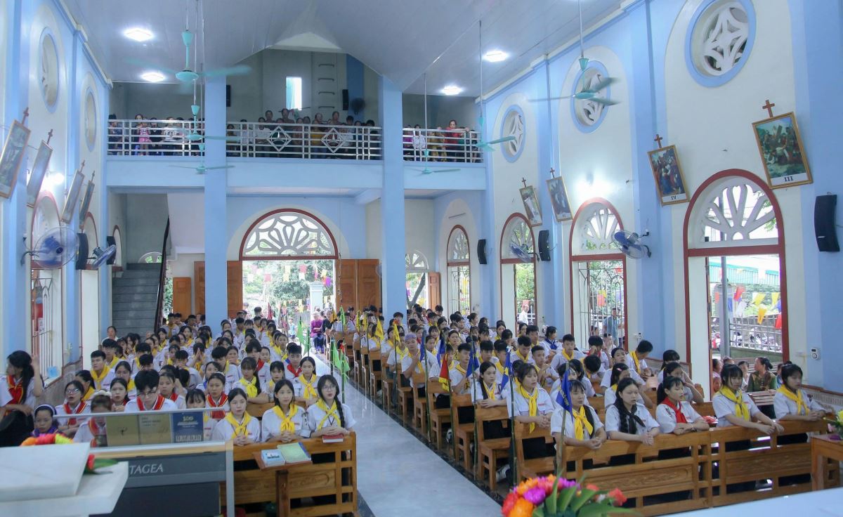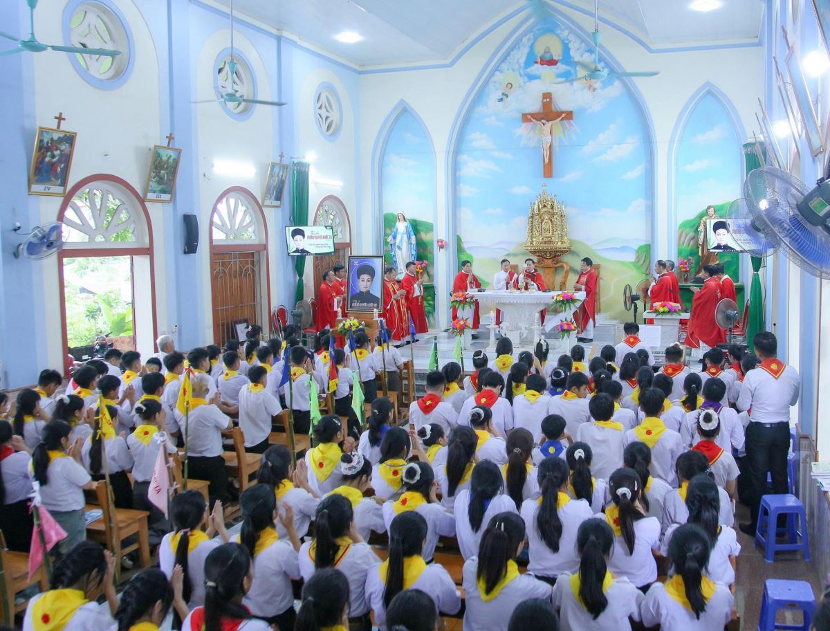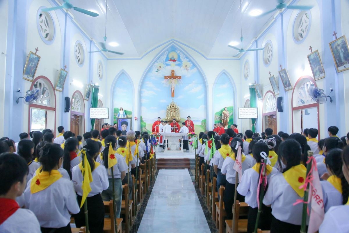WGPHH – Sáng thứ Ba, ngày 01.7.2025, tại nhà thờ Đầu Núi, giáo xứ Mỹ Bằng, Hiệp đoàn Thiếu nhi Thánh Thể giáo hạt Hà – Tuyên – Hùng đã long trọng mừng lễ quan thầy lần thứ II, kính thánh Phêrô Nguyễn Khắc Tự.