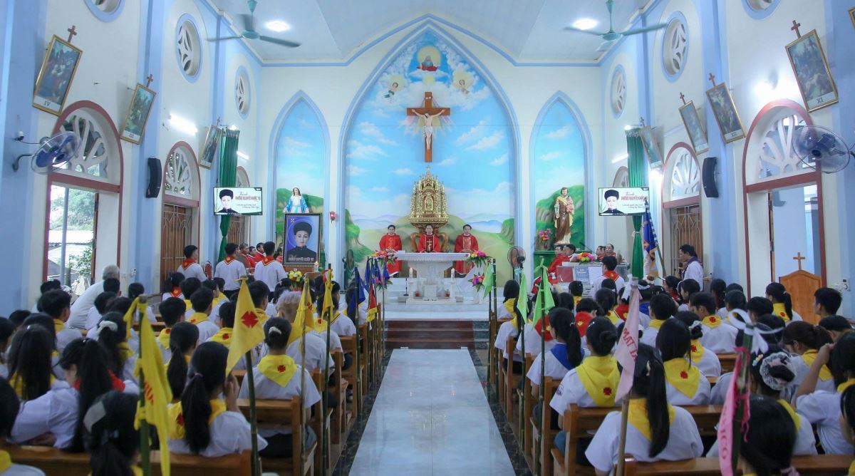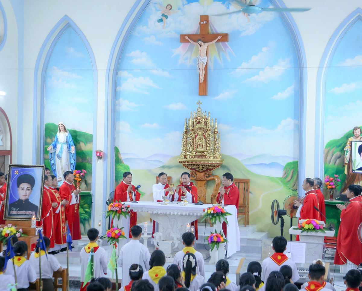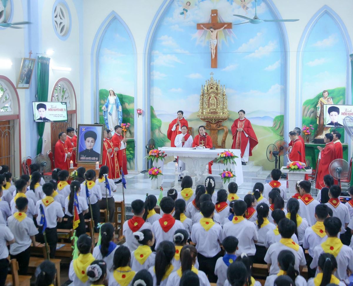 WGPHH – Sáng thứ Ba, ngày 01.7.2025, tại nhà thờ Đầu Núi, giáo xứ Mỹ Bằng, Hiệp đoàn Thiếu nhi Thánh Thể giáo hạt Hà – Tuyên – Hùng đã long trọng mừng lễ quan thầy lần thứ II, kính thánh Phêrô Nguyễn Khắc Tự.