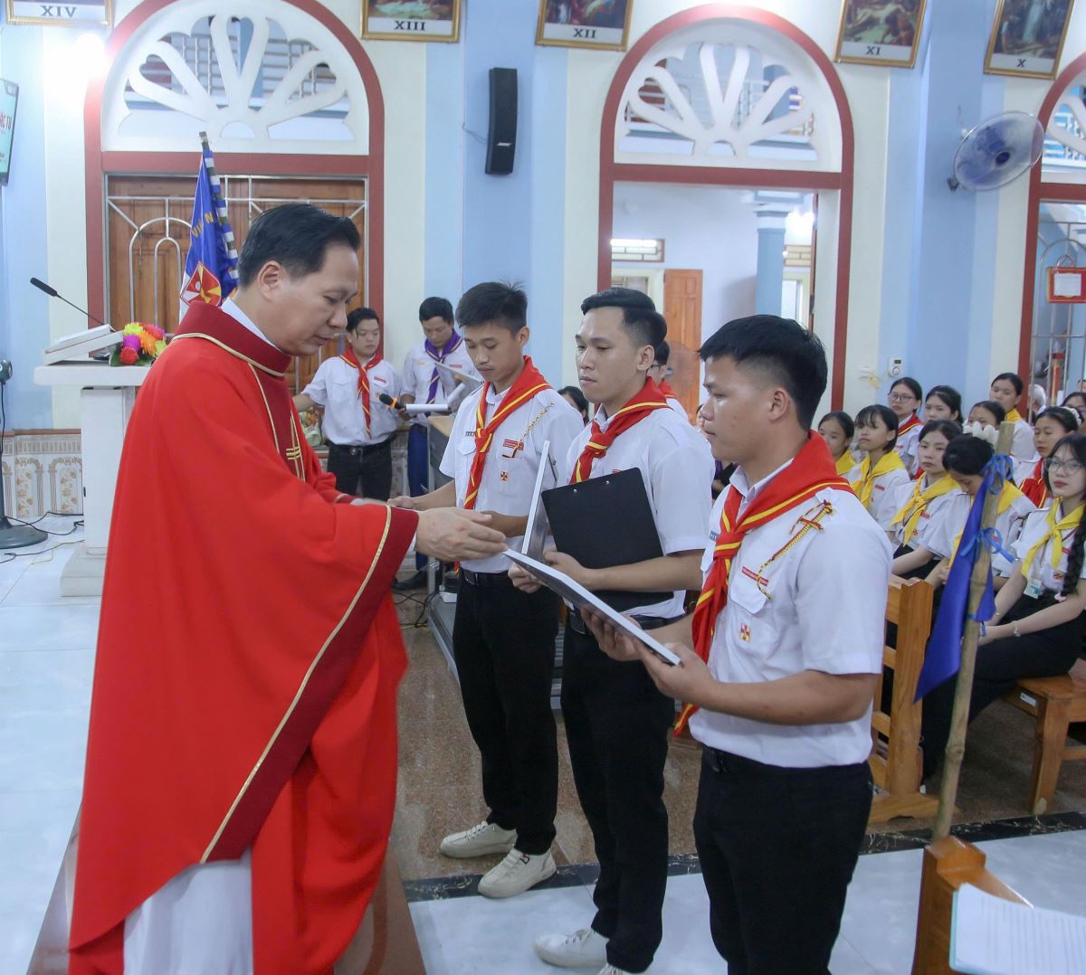 Chia sẻ trong thánh lễ, cha Phanxicô Xaviê Nguyễn Văn Thái đã nhấn mạnh đến ơn gọi và sứ mạng cao quý của người huynh trưởng, dự trưởng. Ngài ví dự trưởng như những mầm non đang được ươm trồng, chuẩn bị hành trang để bước vào con đường dấn thân phục vụ, còn huynh trưởng là những người anh chị mẫu mực, dẫn dắt thiếu nhi bằng chính đời sống đức tin và tình yêu thương.
