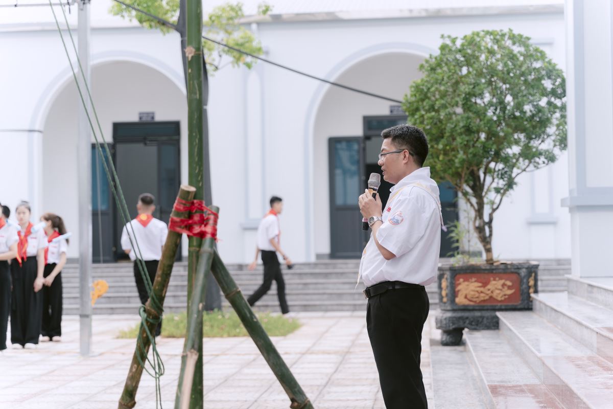 Trước khi bước vào nghi thức nhập sa mạc, cha Giuse Nguyễn Ngọc Ngoạn - tuyên uý xứ đoàn Đồng Xa đã gửi lời động viên đến các sa mạc sinh, khích lệ các bạn nêu cao tinh thần học hỏi và dấn thân.