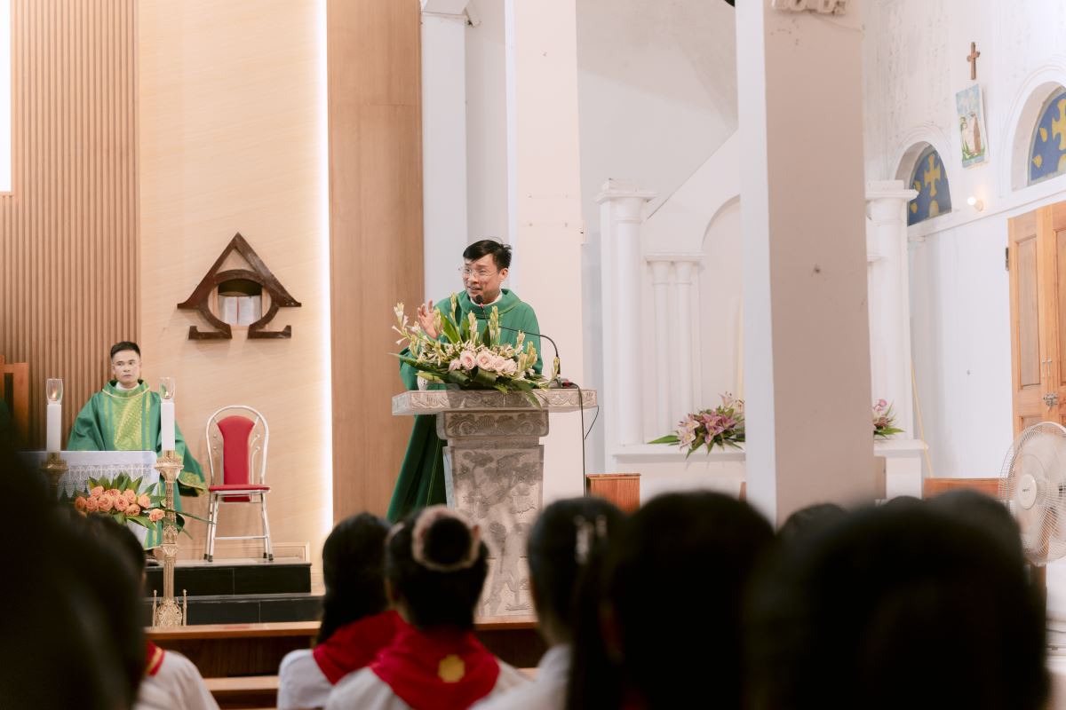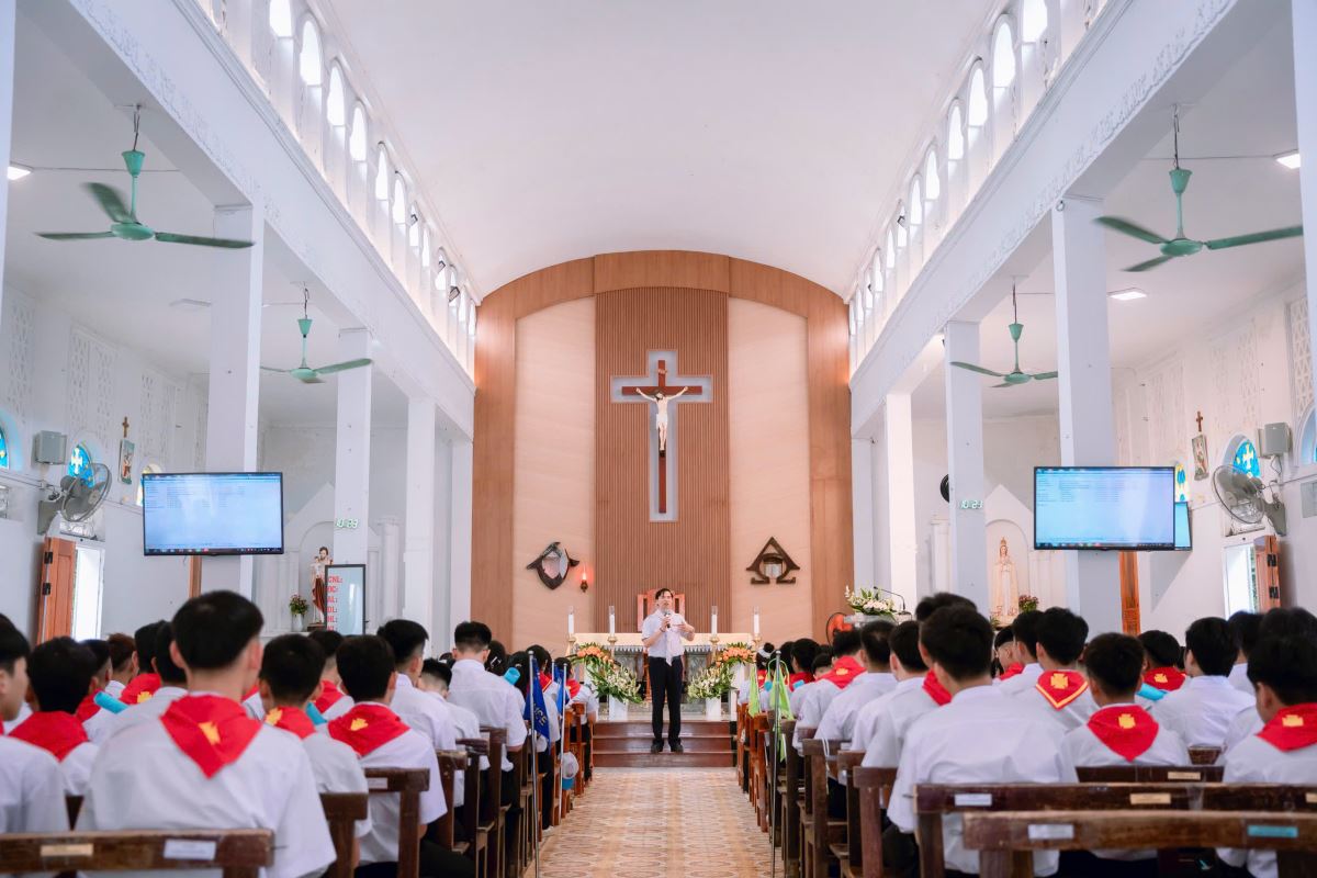 Trong bài giảng, cha Giuse Nguyễn Ngọc Ngoạn – sa mạc phó đã nhấn mạnh đến ơn gọi và sứ mạng của mỗi sa mạc sinh khi tham dự khóa huấn luyện. Ngài khẳng định: chính Chúa đã mời gọi từng người hiện diện nơi đây để trở thành những anh chị huynh trưởng – những người mang sứ mạng yêu thương, giáo dục và làm gương sáng cho các em thiếu nhi. Cha mời gọi các sa mạc sinh hãy học tập cách nghiêm túc, dấn thân trọn vẹn trong từng giờ học và hoạt động, để khóa sa mạc thực sự trở thành hành trình biến đổi và trưởng thành trong ơn gọi phục vụ.