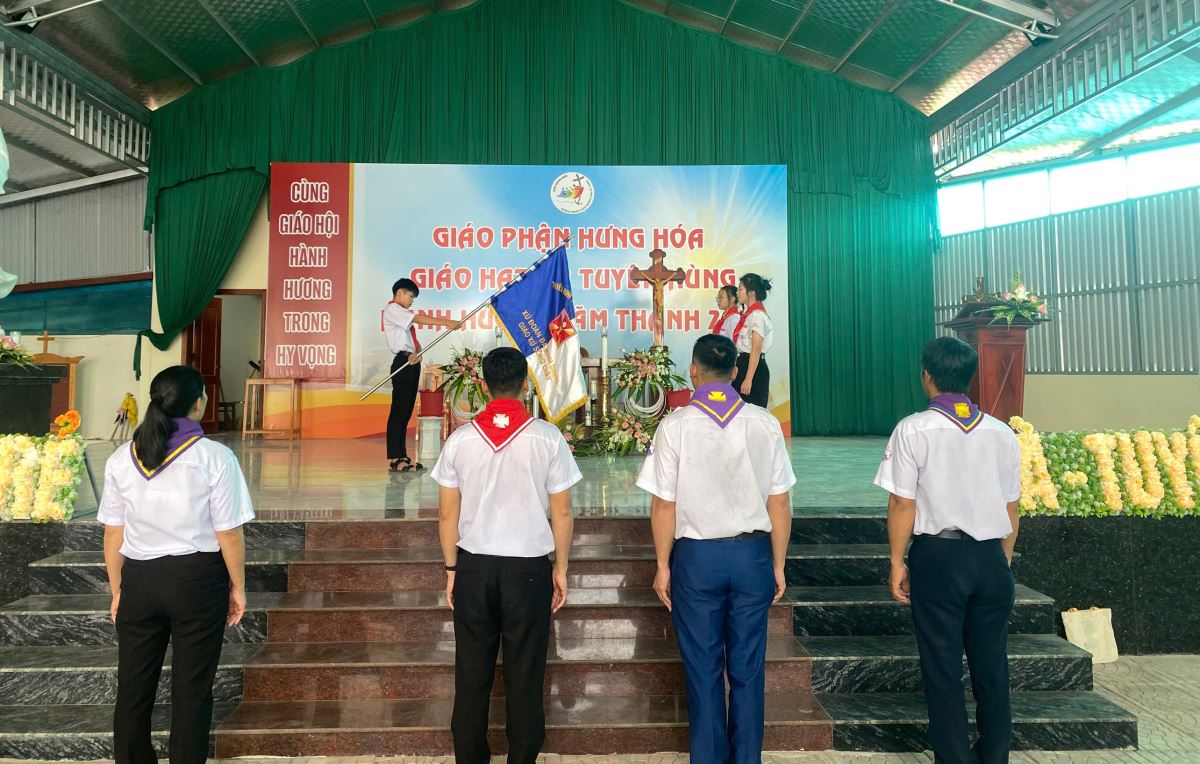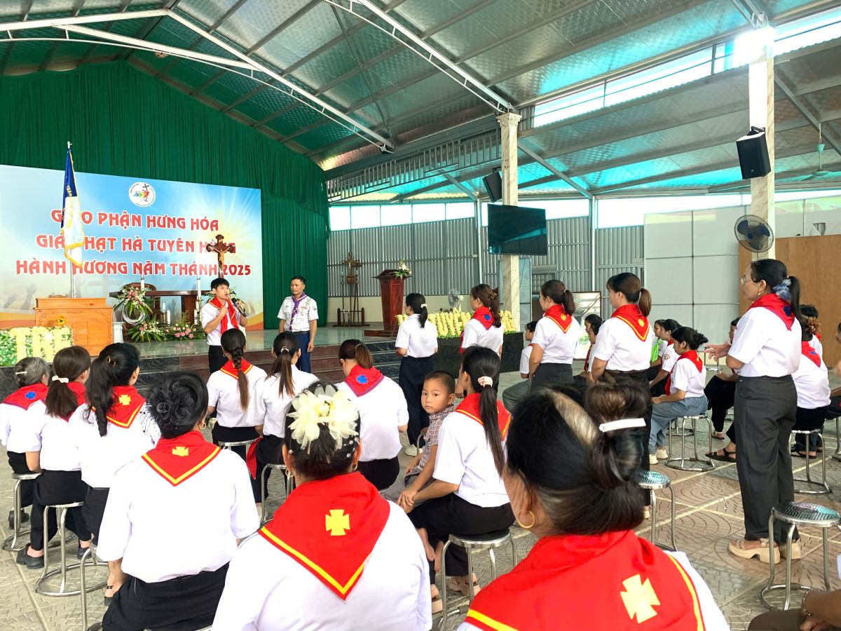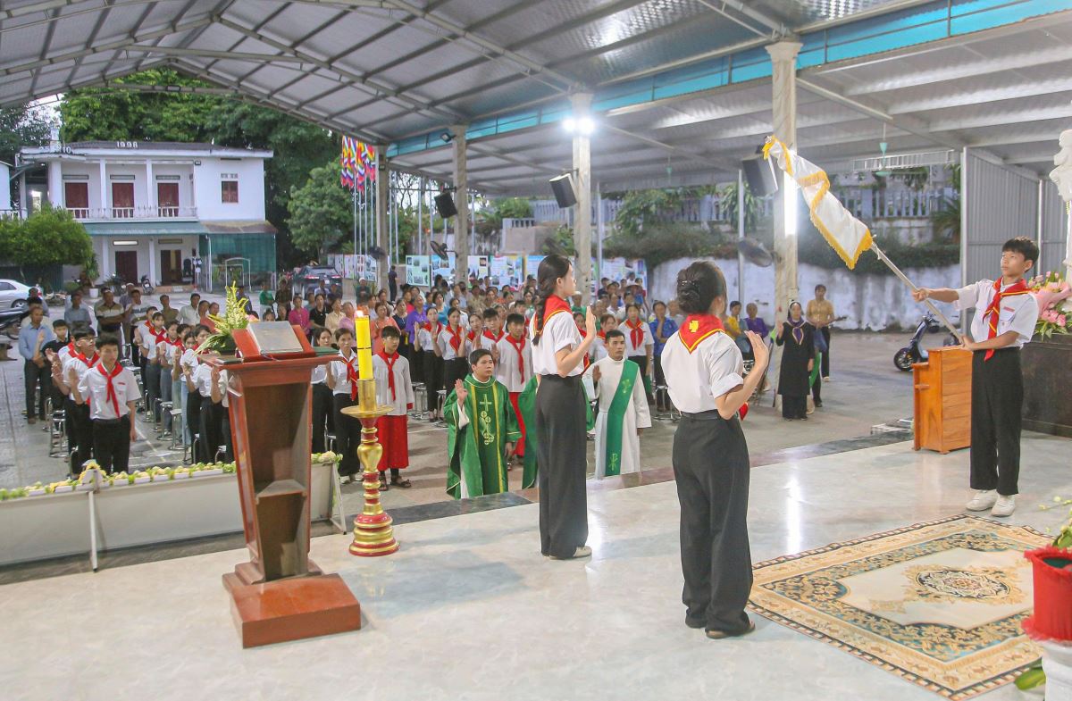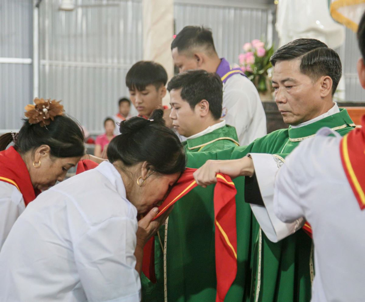 Trong Thánh lễ, có diễn ra nghi thức tiếp nhận và trao khăn huynh trưởng cho những giáo lý viên đủ điều kiện – một dấu chỉ thiêng liêng và cao quý, ghi dấu sự trưởng thành và dấn thân phục vụ của mỗi người.