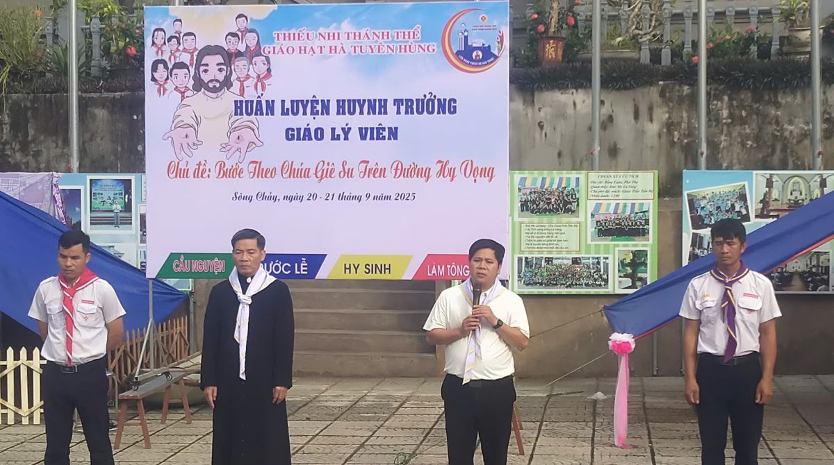 WGPHH - Trong hai ngày 27 và 28 tháng 9, tại giáo xứ Sông Chảy, Hiệp đoàn Thiếu Nhi Thánh Thể Phêrô Nguyễn Khắc Tự – Giáo hạt Hà Tuyên Hùng đã tổ chức khóa huấn luyện huynh trưởng đợt 2 dành cho quý thầy cô giáo lý viên. Hiện diện trong khóa huấn luyện có Cha Gioan Vũ Ân – Tuyên úy hiệp đoàn, Cha Giuse Đỗ Công Tiếu – chính xứ Sông Chảy, Thầy Phó tế Phêrô Mai Văn Thủy, quý Dì, Ban huấn luyện và gần 50 tham dự viên.