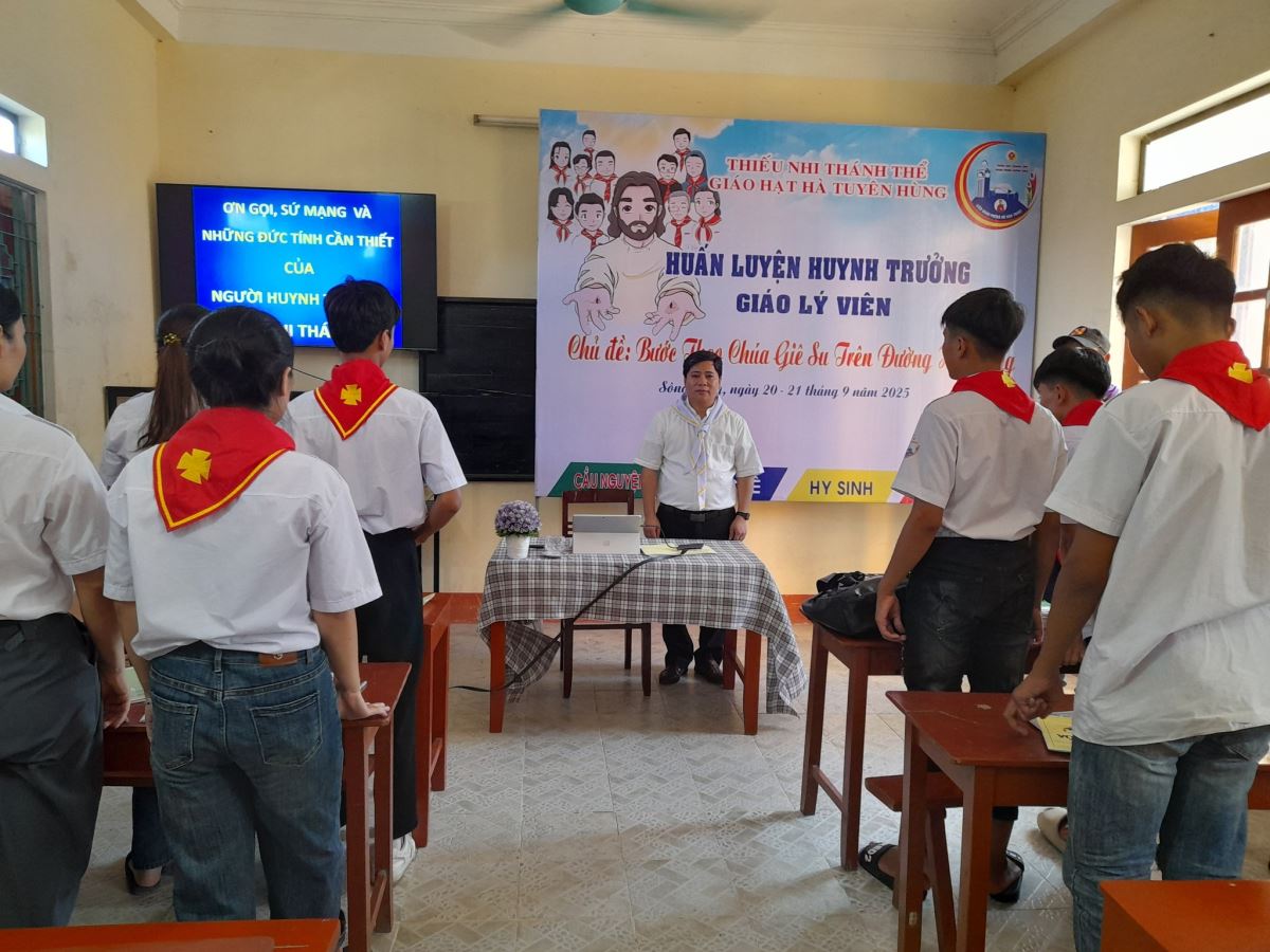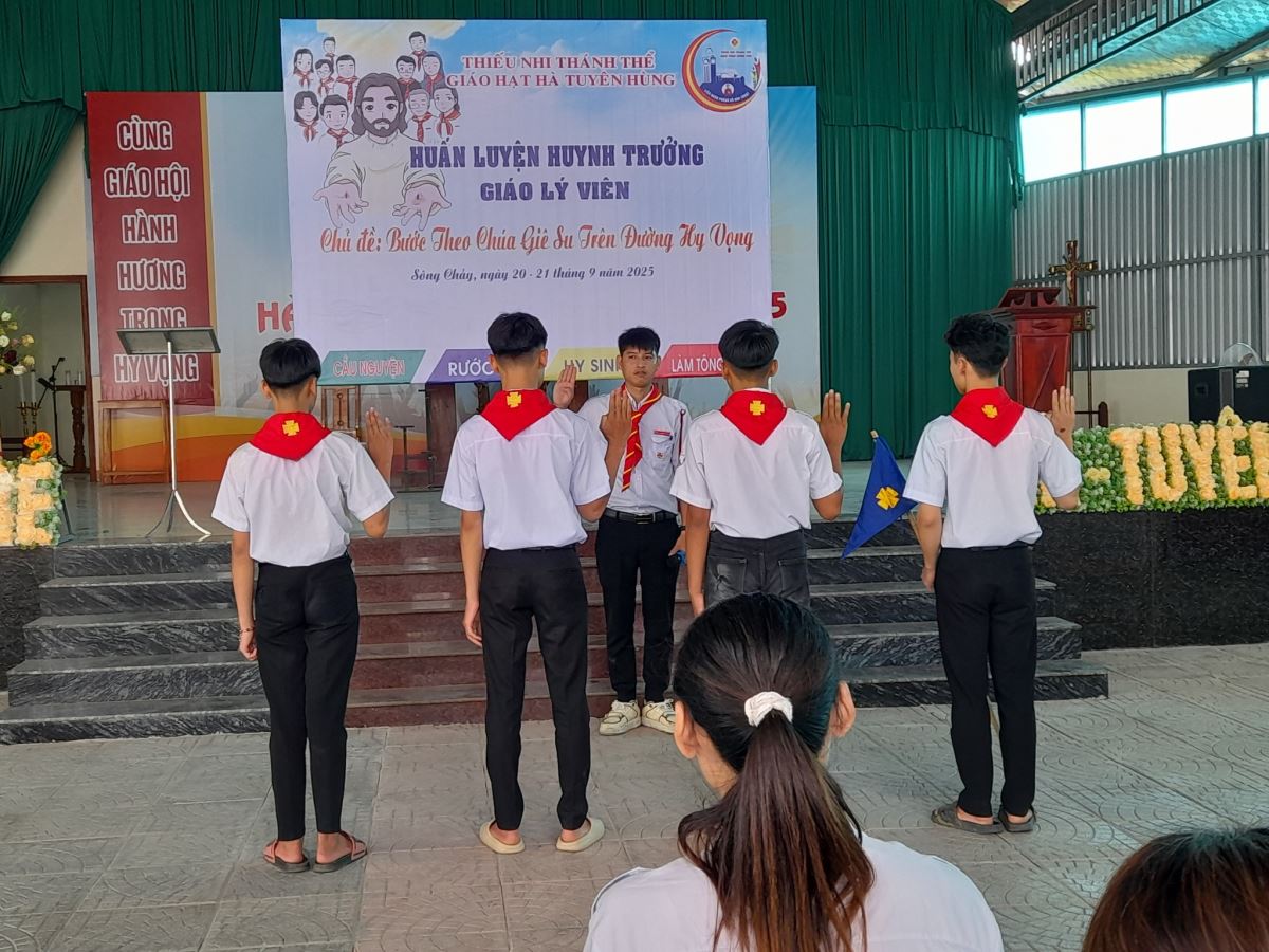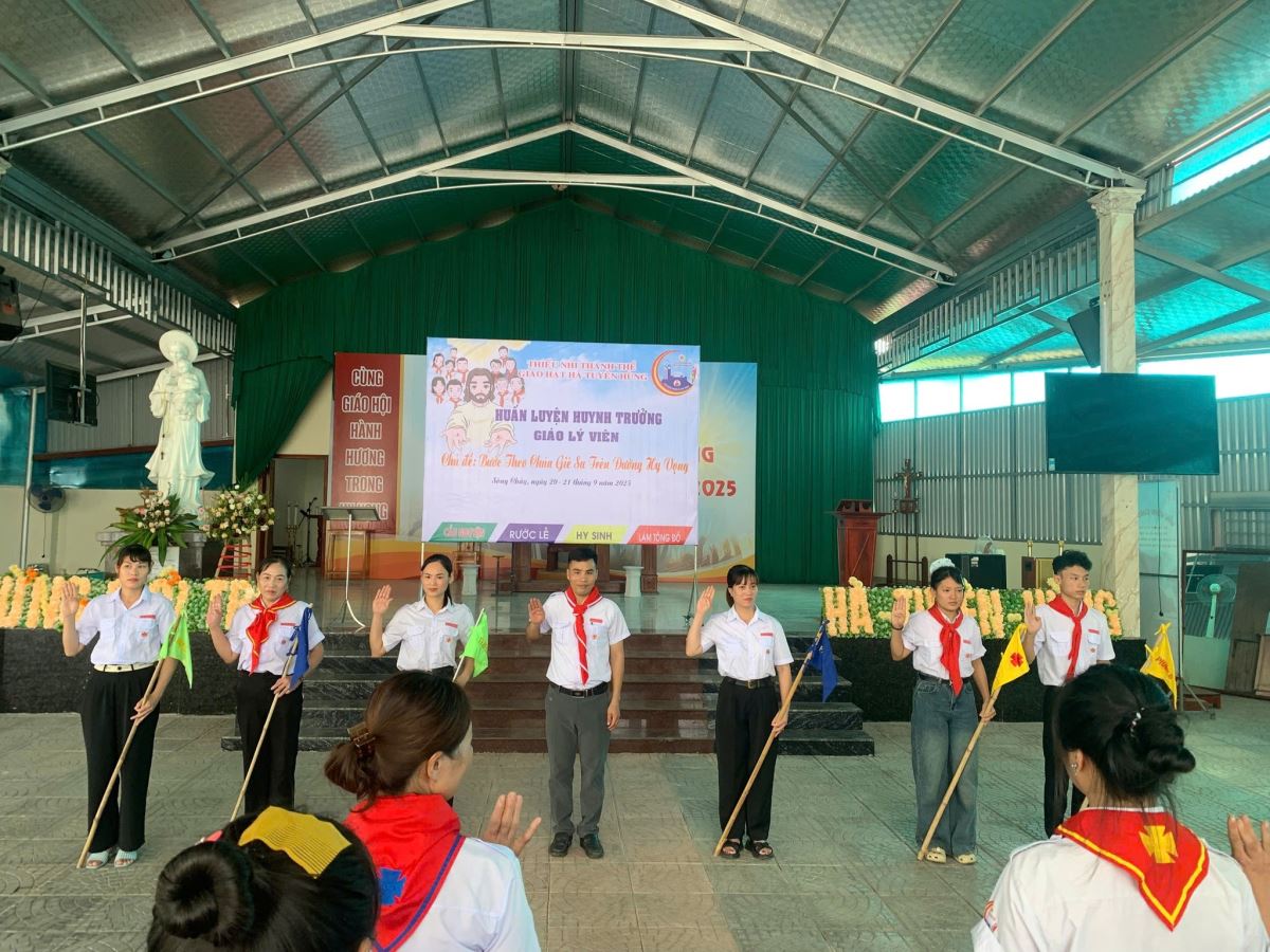 Trong bầu khí ấy, được sự ủy quyền của Liên đoàn TNTT - Giáo phận Hưng Hóa, Hiệp Đoàn Phêrô Nguyễn Khắc Tự - Giáo hạt Hà Tuyên Hùng đã chính thức khai mạc Khóa huấn luyện Huynh trưởng dành cho Giáo lý viên giáo xứ Sông Chảy, đợt 1 diễn ra từ ngày 20 – 21/9/2025. Đây là chương trình mang nhiều ý nghĩa, không chỉ đào tạo về kiến thức và kỹ năng, mà còn thắp lên niềm hy vọng canh tân nơi cộng đoàn.