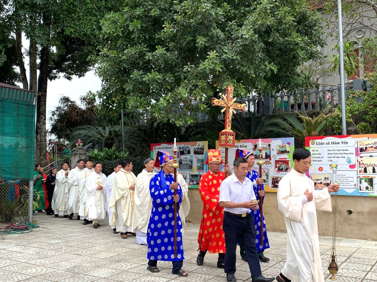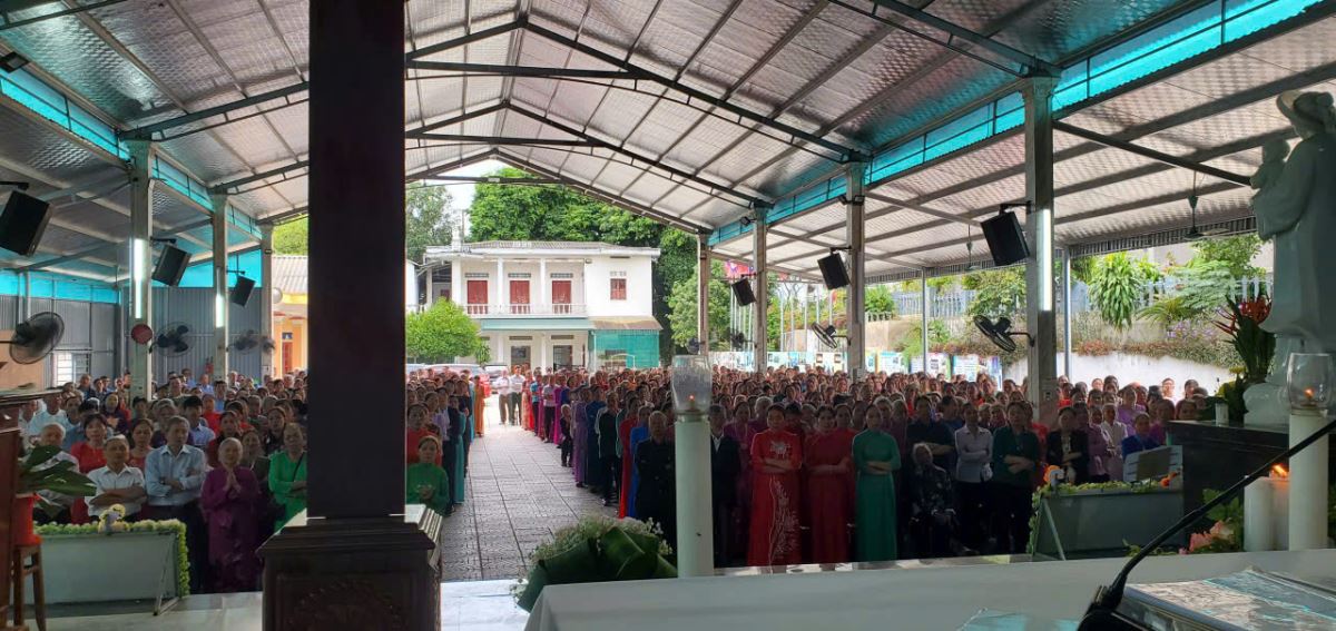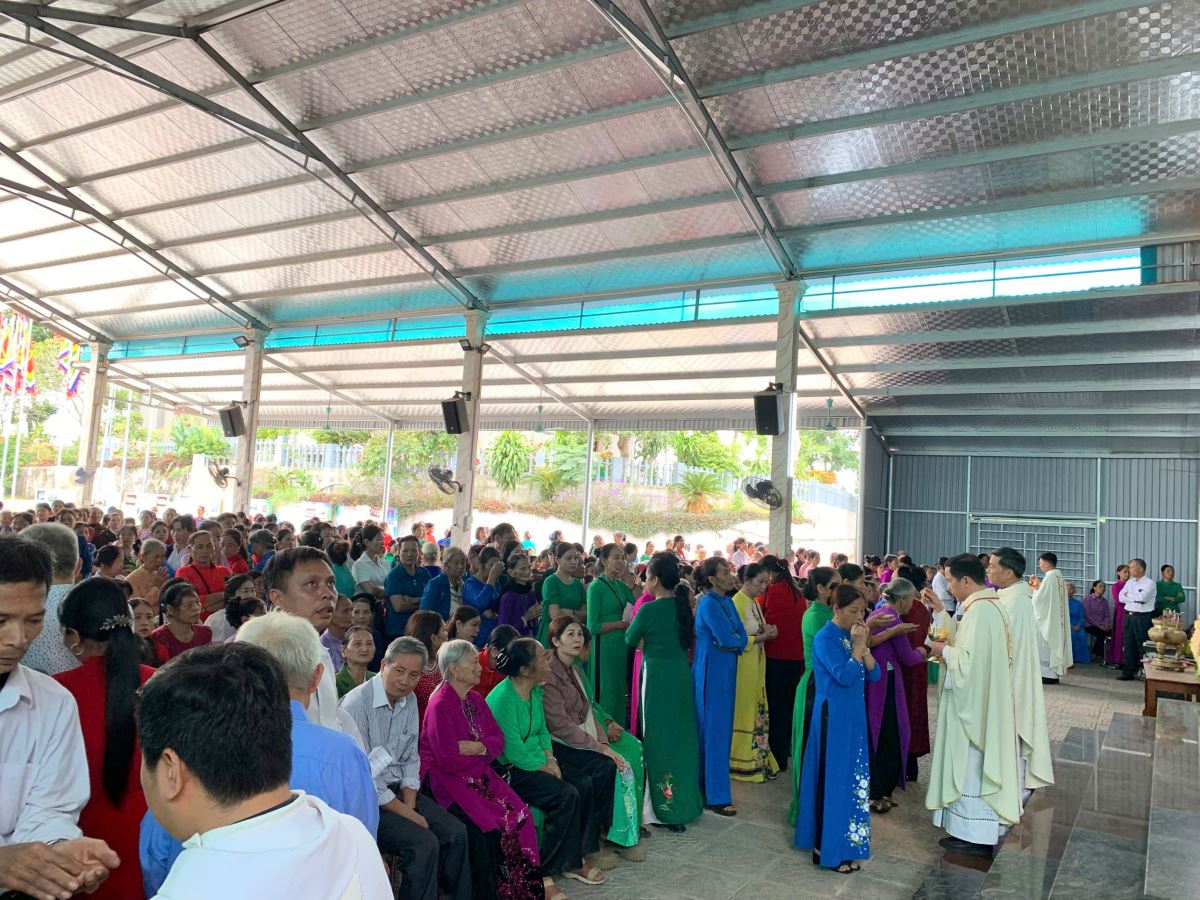 Đúng 10g00, mọi người tập trung tại nhà thờ để cử hành nghi thức hành hương về Nhà Đức Mẹ La Vang, trong tâm tình cầu nguyện và tạ ơn. Những bước chân hành hương hòa trong tiếng hát kinh Mân Côi như lời tuyên xưng niềm tin và lòng cậy trông nơi Mẹ.
