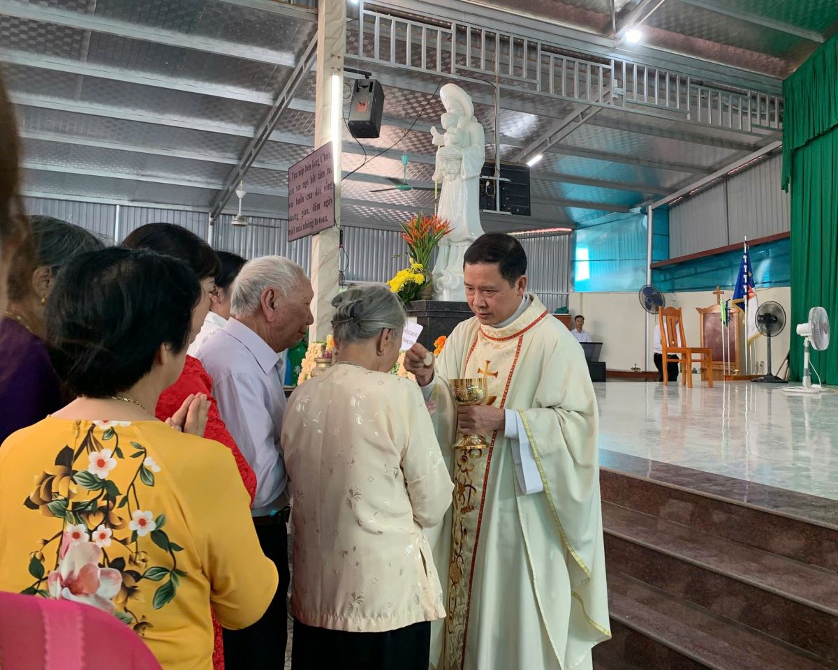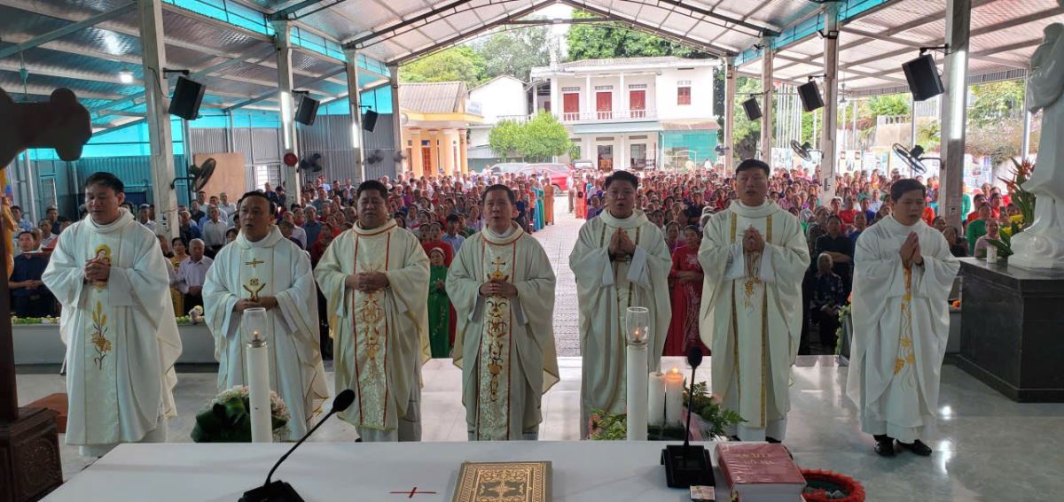 Đỉnh cao của ngày hành hương là Thánh Lễ trọng thể kính Đức Mẹ Mân Côi, do Cha Giuse Đỗ Ngọc Tháp chủ tế, cùng với quý cha trong giáo hạt đồng tế.