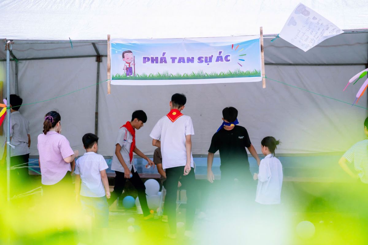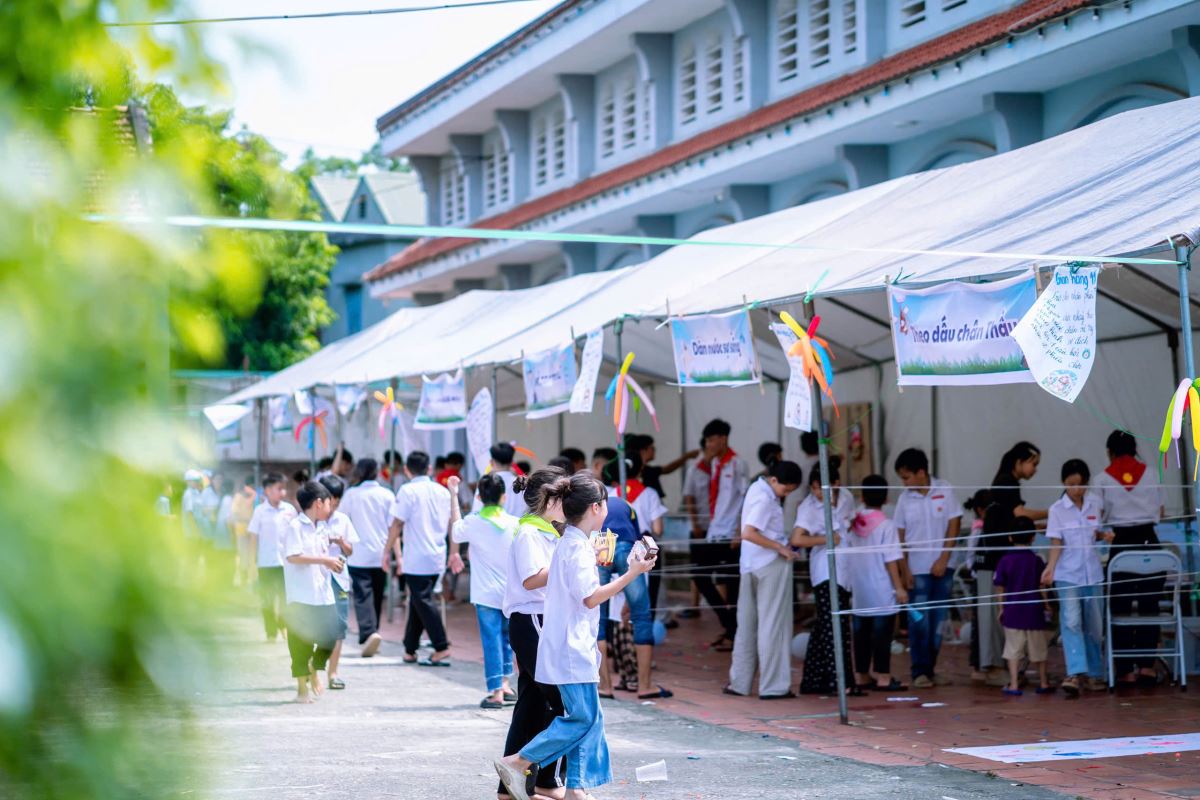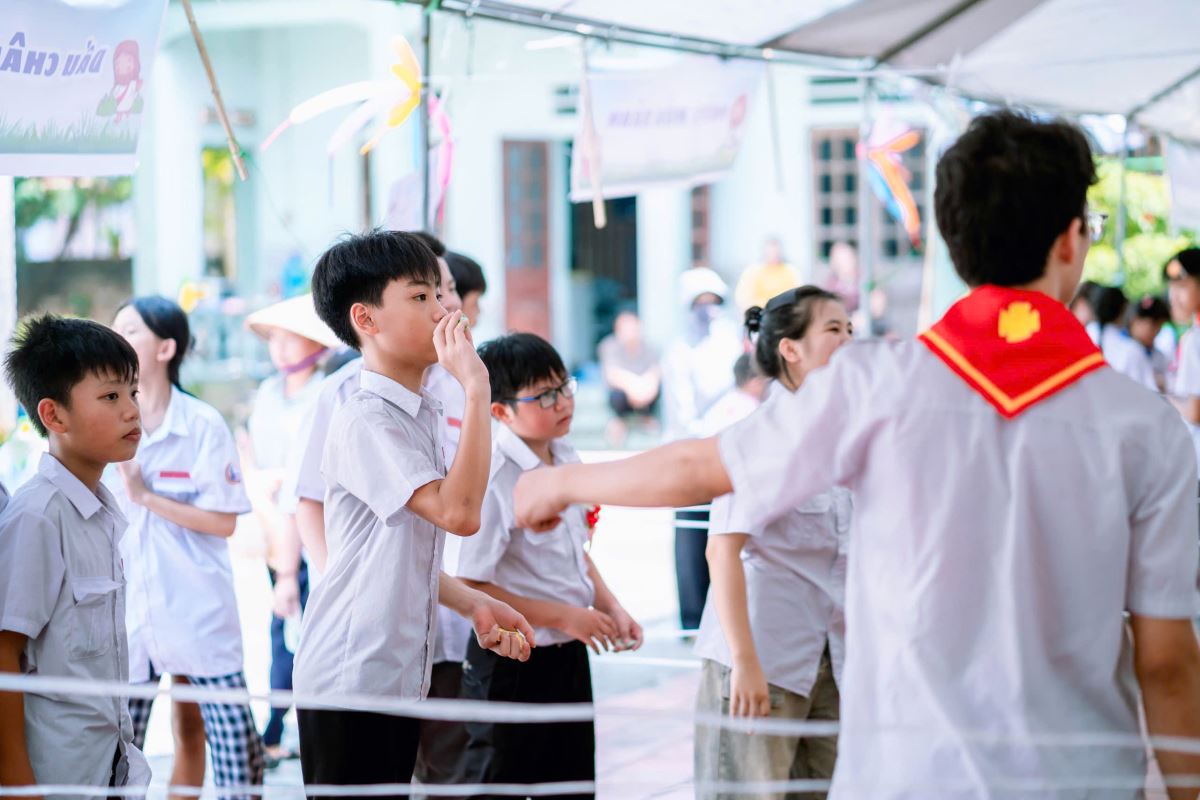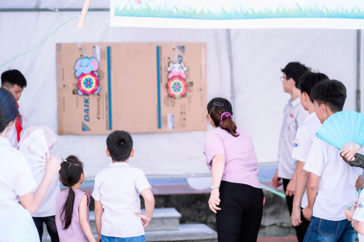 Từ sáng sớm, từng gian hàng được trang trí rực rỡ với sắc màu tươi vui: nào là những gian hàng ẩm thực thơm lừng mùi bánh, chè, xiên que; những gian trò chơi vận động và trí tuệ sôi nổi tiếng cười; những góc quà lưu niệm nhỏ xinh đầy ý nghĩa.