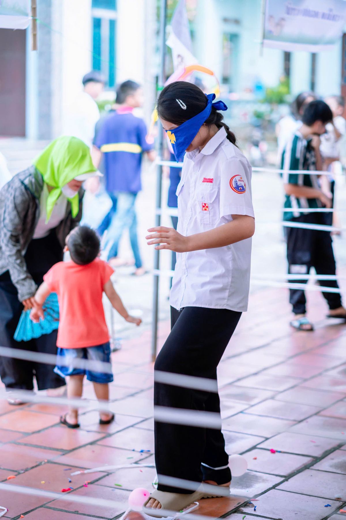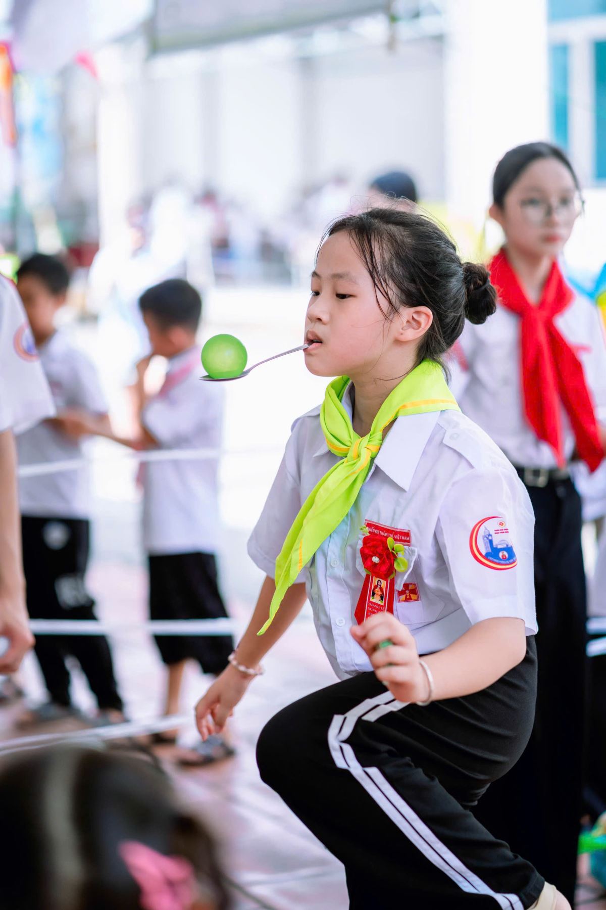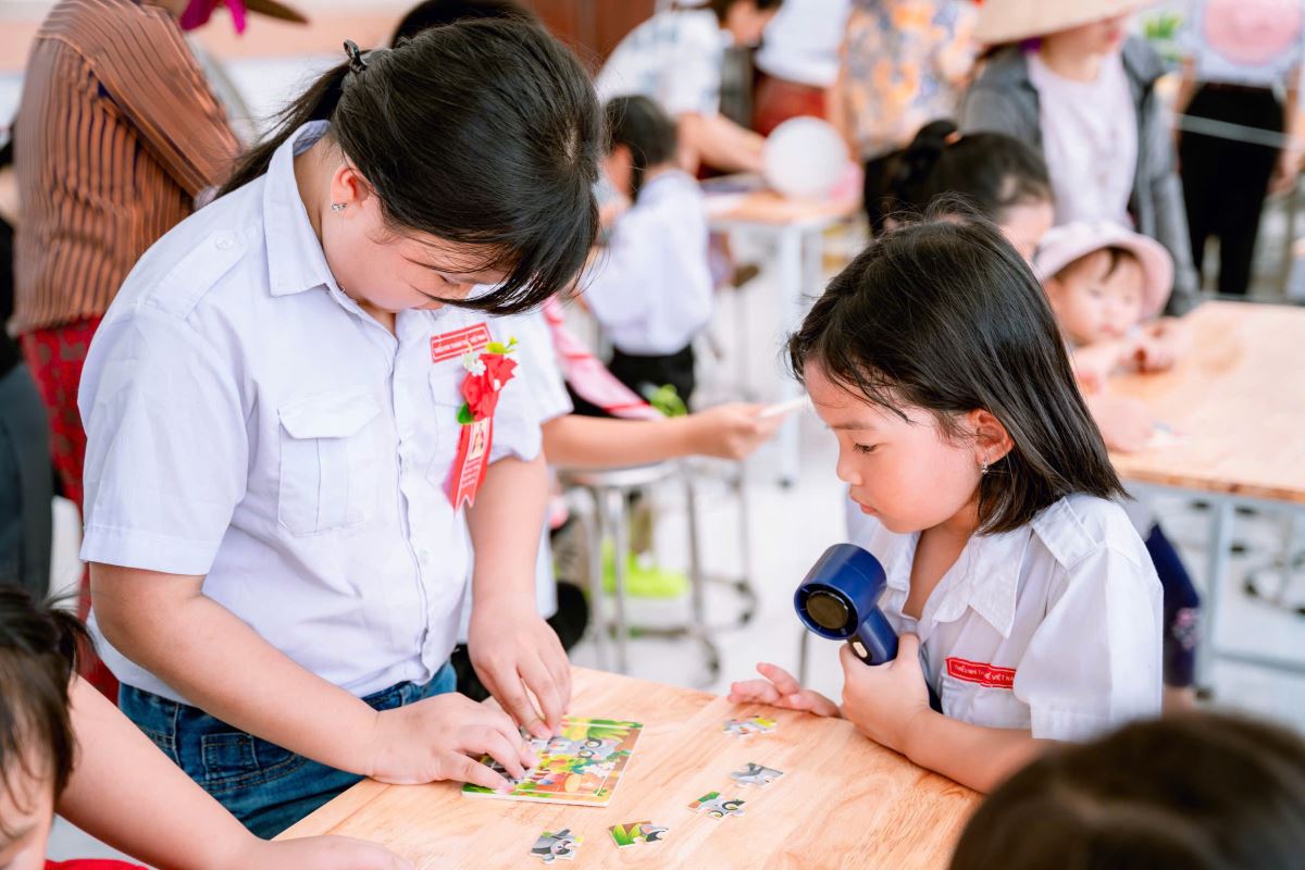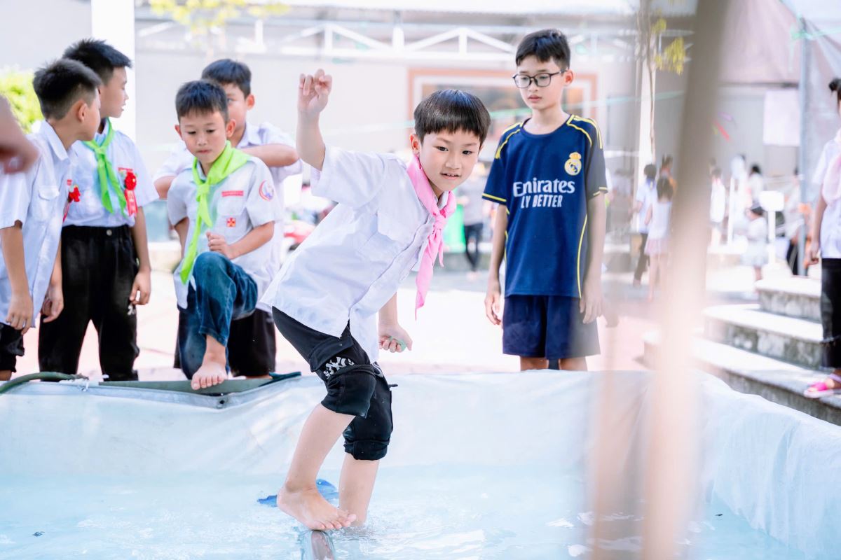 Từ sáng sớm, từng gian hàng được trang trí rực rỡ với sắc màu tươi vui: nào là những gian hàng ẩm thực thơm lừng mùi bánh, chè, xiên que; những gian trò chơi vận động và trí tuệ sôi nổi tiếng cười; những góc quà lưu niệm nhỏ xinh đầy ý nghĩa.