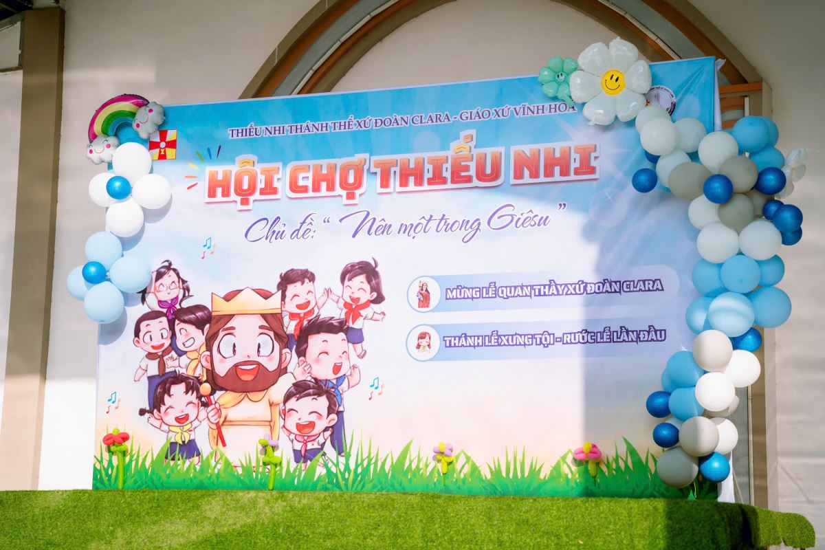 WGPHH - Chúa Nhật, ngày 10/8/2025, sau Thánh lễ trọng thể mừng kính Thánh Clara – Quan thầy Xứ đoàn Thiếu Nhi Thánh Thể Giáo xứ Vĩnh Hoá, khuôn viên giáo xứ trở nên rộn ràng hơn bao giờ hết với Hội chợ Hè 2025. Đây là hoạt động đặc biệt quy tụ các em thiếu nhi, quý phụ huynh và cộng đoàn, cùng sống tinh thần hiệp nhất, yêu thương theo chủ đề “Nên Một Trong Giêsu”.