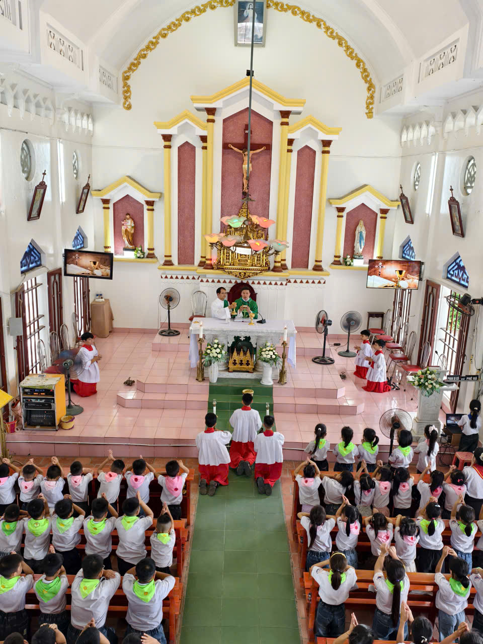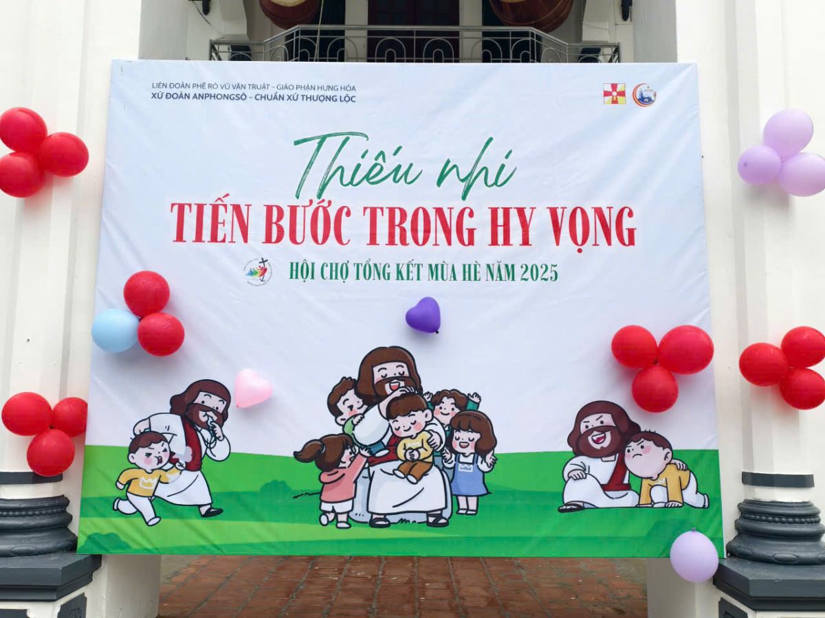 WGPHH – Chúa nhật, ngày 17/8/2025, khuôn viên nhà thờ Chuẩn xứ Thượng Lộc (Thanh Thủy – Phú Thọ) ngập tràn tiếng cười và bầu khí hân hoan khi các em thiếu nhi quy tụ về tham dự ngày hội chợ tổng kết khóa giáo lý hè với chủ đề: “Thiếu nhi tiến bước trong hy vọng.”