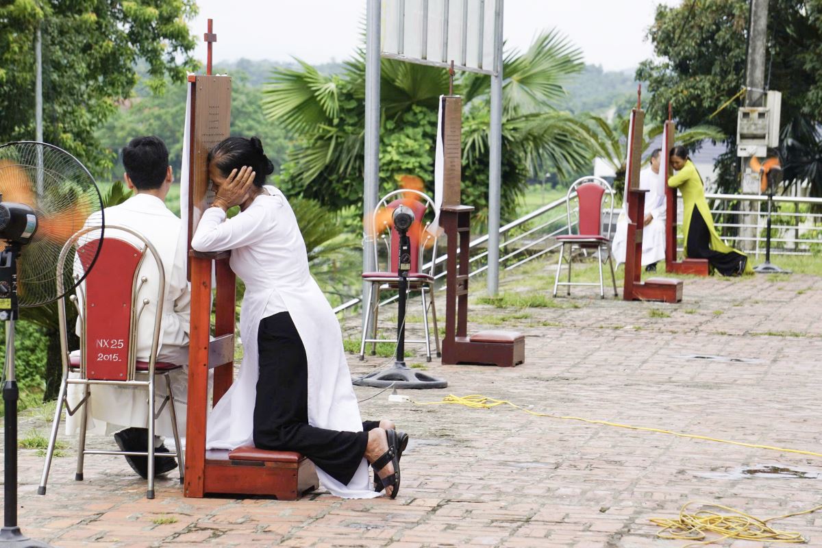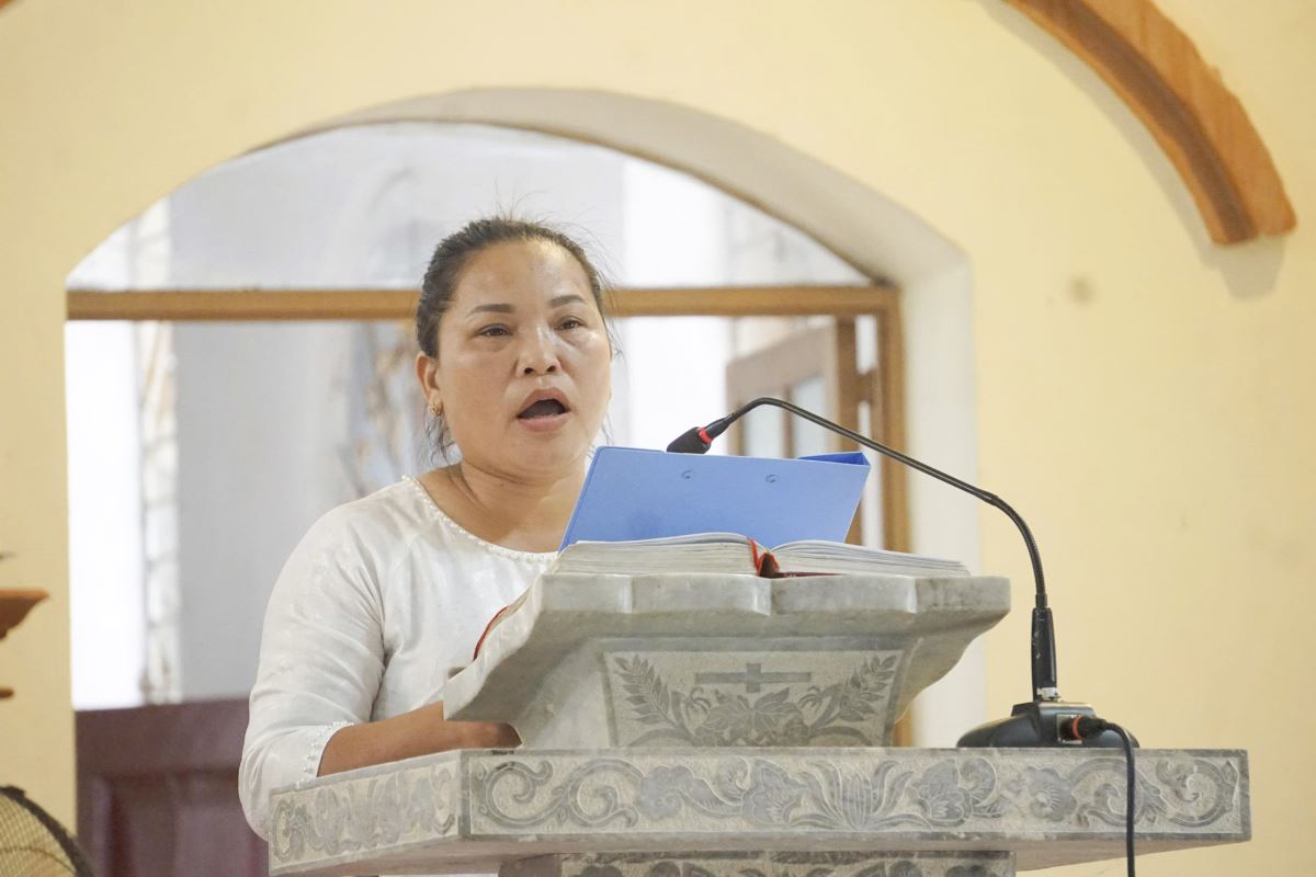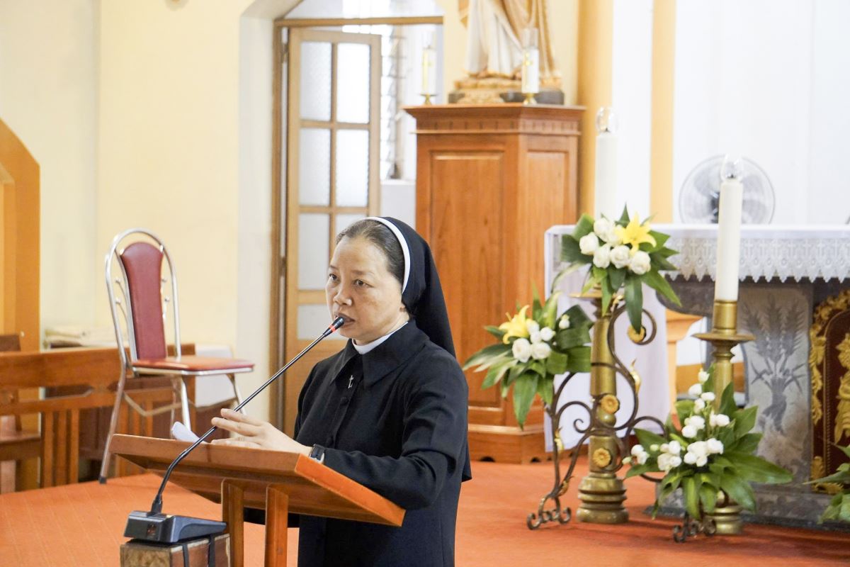 Sau đó cộng đoàn bước vào giờ tĩnh tâm với phần chia sẻ của Dì Maria Đỗ Thị Kim Anh – dòng Mến Thánh Giá Vân Thê Phượng Vĩ. Qua những lời gợi ý thiêng liêng, mọi người được mời gọi dừng lại giữa bộn bề công việc mục vụ, để lắng nghe tiếng Chúa và làm mới lại lòng nhiệt thành phục vụ. Sau khi tĩnh tâm xét mình, đoàn hành hương lãnh nhận Bí tích Hòa giải do Quý Cha trong Giáo hạt phụ trách.
