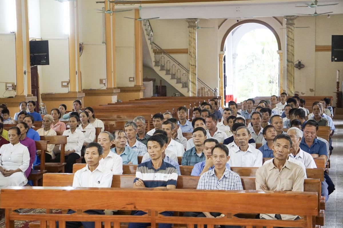 Sau đó, Cha Gioan Phaolo Trần Anh Tiến chia sẻ cho đoàn hành hương chuyên đề về Năm Thánh, qua đó giúp cộng đoàn nhìn lại căn tính người thừa tác viên trong Giáo hội và vai trò quan trọng của Hội đồng Giáo xứ - Ban hành giáo trong việc xây dựng hiệp nhất, phát triển đời sống đức tin tại các giáo xứ.