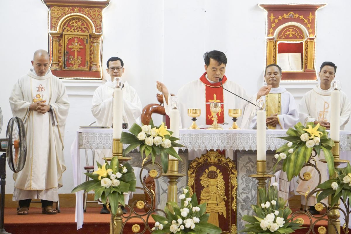 Cao điểm Thánh lễ đồng tế được cử hành trang trọng do Cha Ngô Đức Súy chủ tế, cùng đồng tế có Quý cha trong phiên trực.