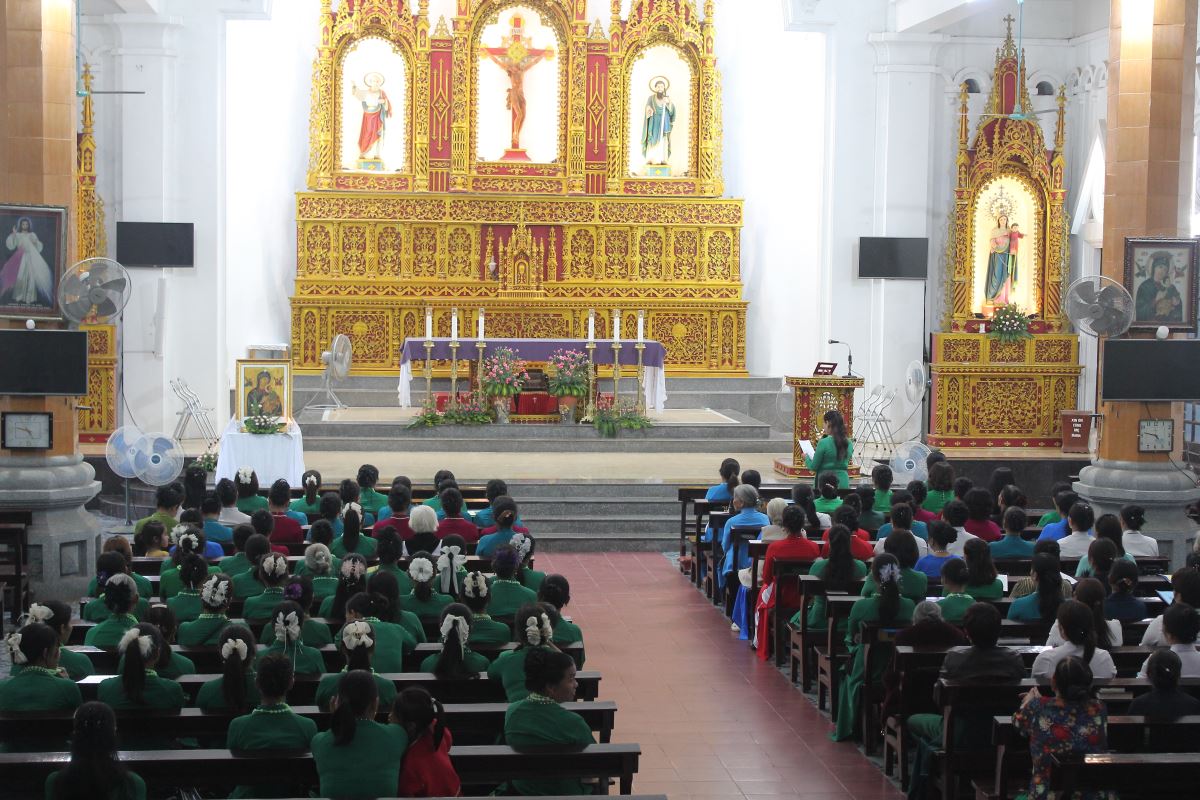 WGPHH – Chiều thứ Bảy, ngày 25.10.2025, khoảng 300 hội viên Hội Đức Mẹ Hằng Cứu Giúp thuộc các Giáo xứ An Bình, Yên Hưng, Quần Hào, Yên Bái, cùng Giáo họ Khe 4 và Giáo điểm Châu Giang đã quy tụ về nhà thờ Giáo xứ Yên Bái để tham dự ngày hành hương Năm Thánh. Chương trình gồm giờ khấn Đức Mẹ Hằng Cứu Giúp, dâng hoa Mân Côi, nghi thức hành hương và Thánh lễ.