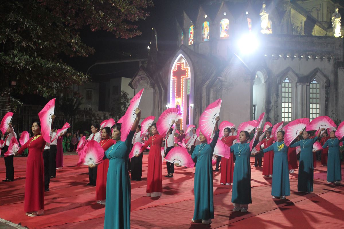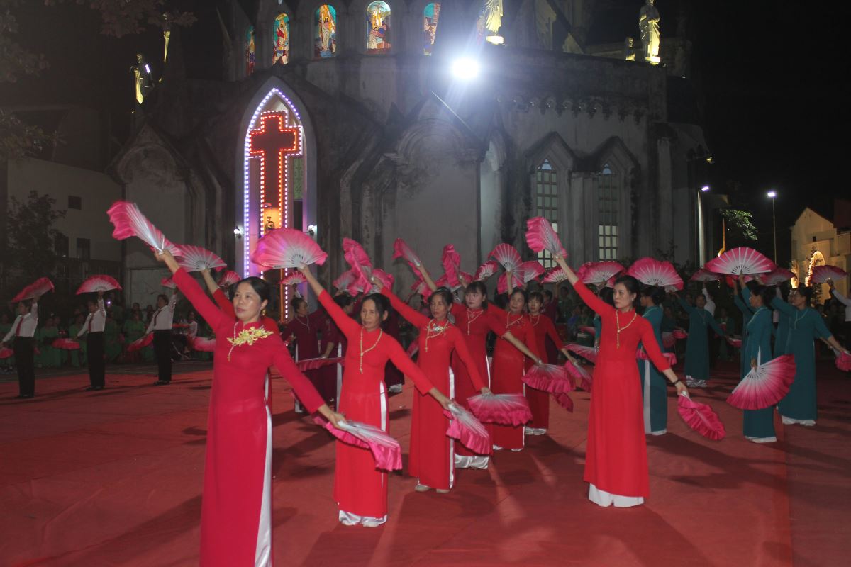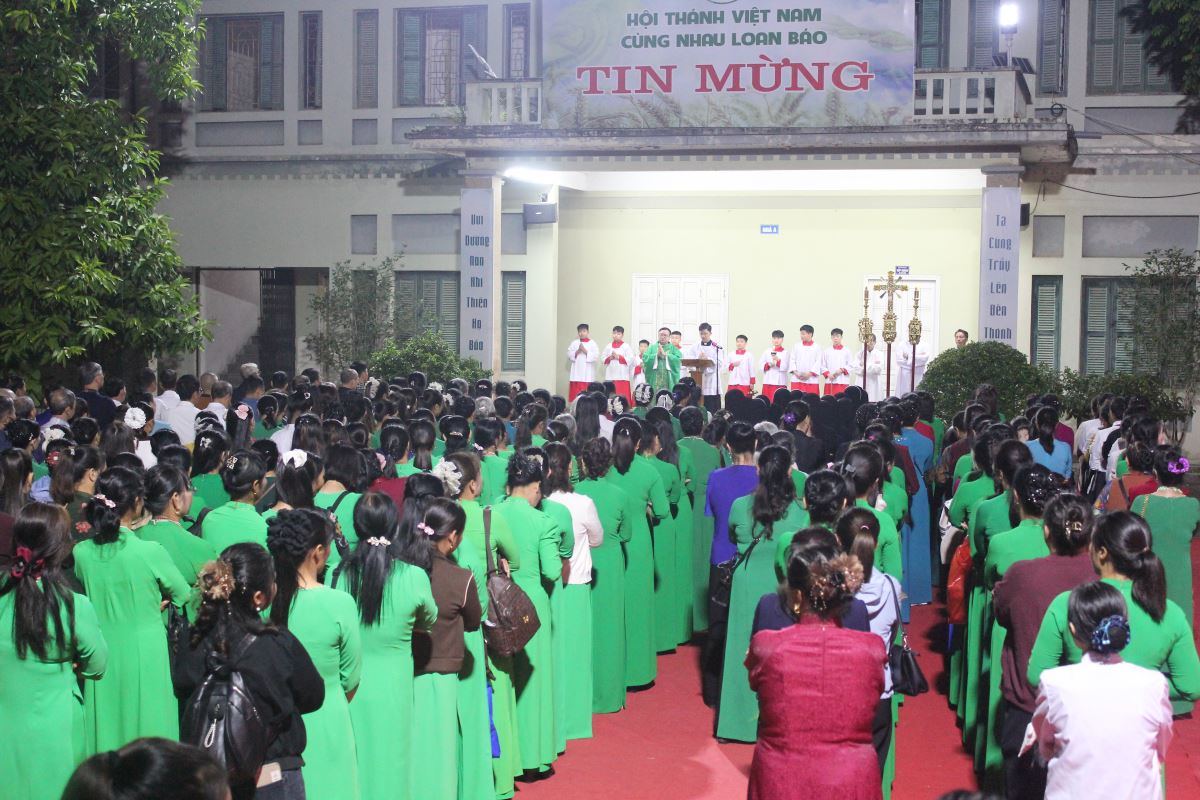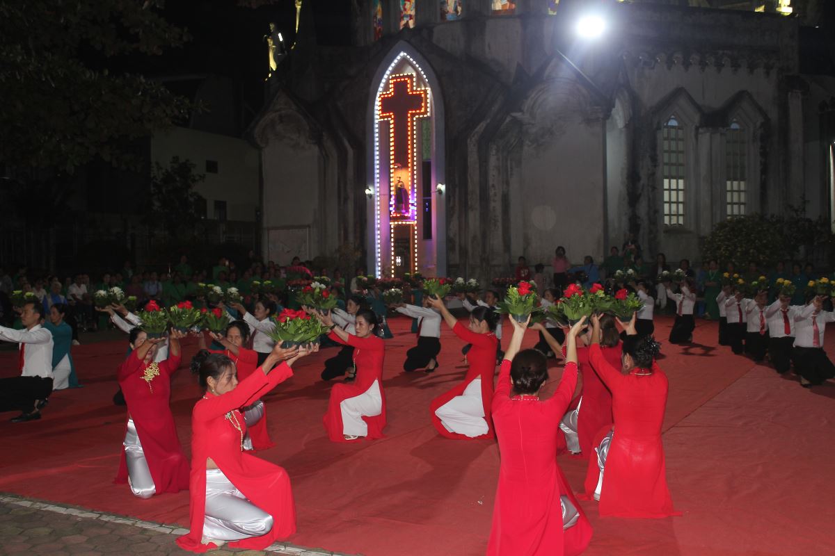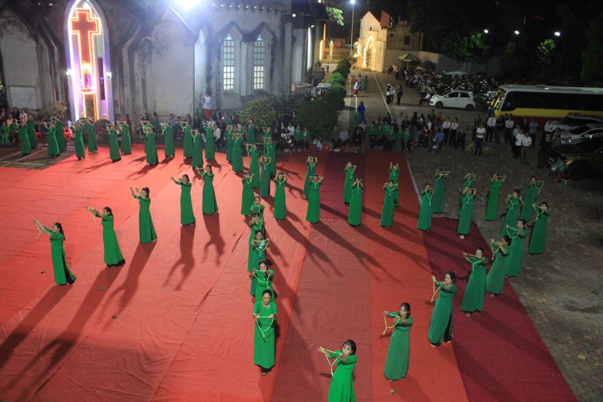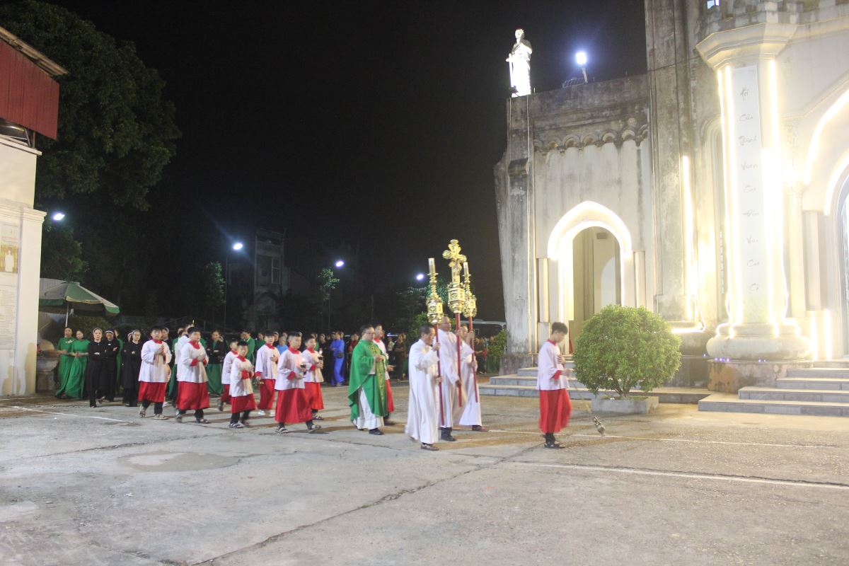 Đến 19g30, cộng đoàn tham dự nghi thức hành hương Năm Thánh do Cha Giuse Nguyễn Văn Tuyến, quản xứ Yên Bái, chủ sự. Trong phần huấn từ, cha Giuse chia sẻ: Năm Thánh là dịp Giáo Hội mở kho tàng ân sủng của Thiên Chúa cho chúng ta. Ai biết mở lòng đón nhận sẽ được lãnh nhận ơn phúc ấy, không chỉ cho chính mình mà còn cho các linh hồn tổ tiên, ông bà, cha mẹ.