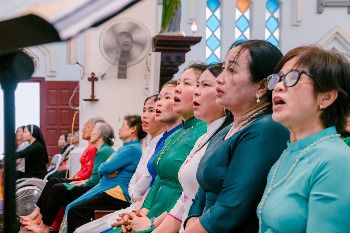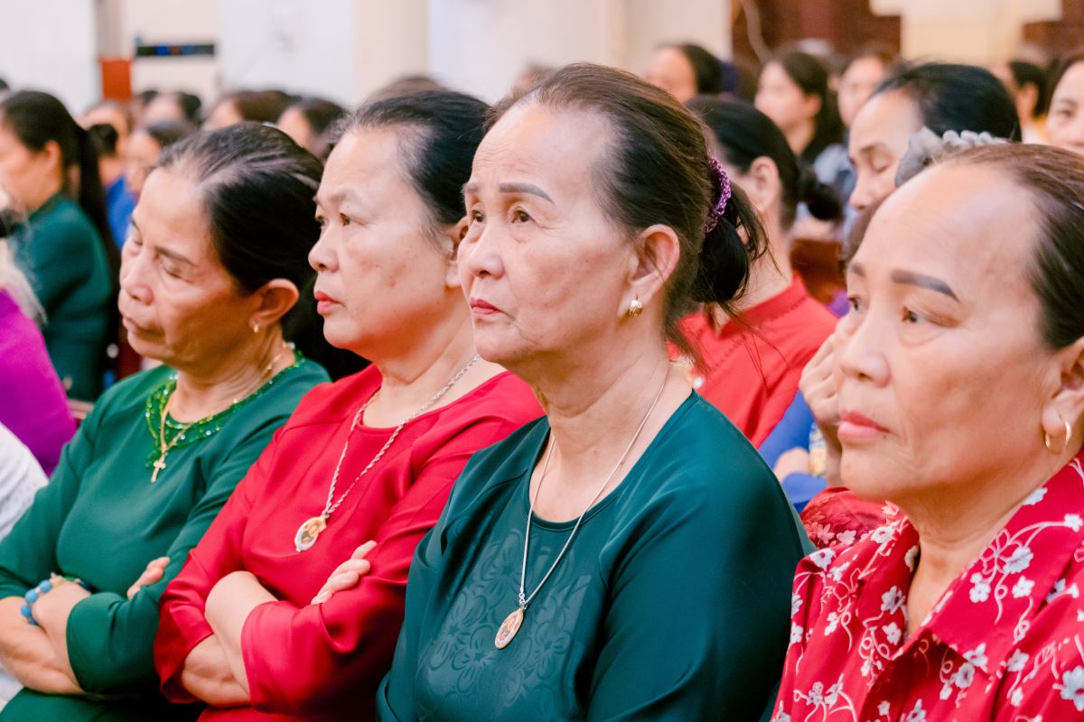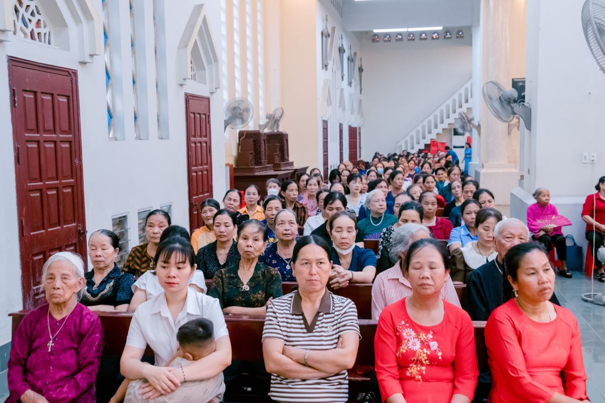 Thánh lễ diễn ra trong bầu khí trang nghiêm và linh thiêng. Mỗi người hiện diện âm thầm dâng lên Mẹ những ước nguyện riêng, khẩn cầu Mẹ chuyển cầu lên Chúa, xin ơn lành tuôn đổ trên bản thân, gia đình, Hội đoàn và toàn thế giới.