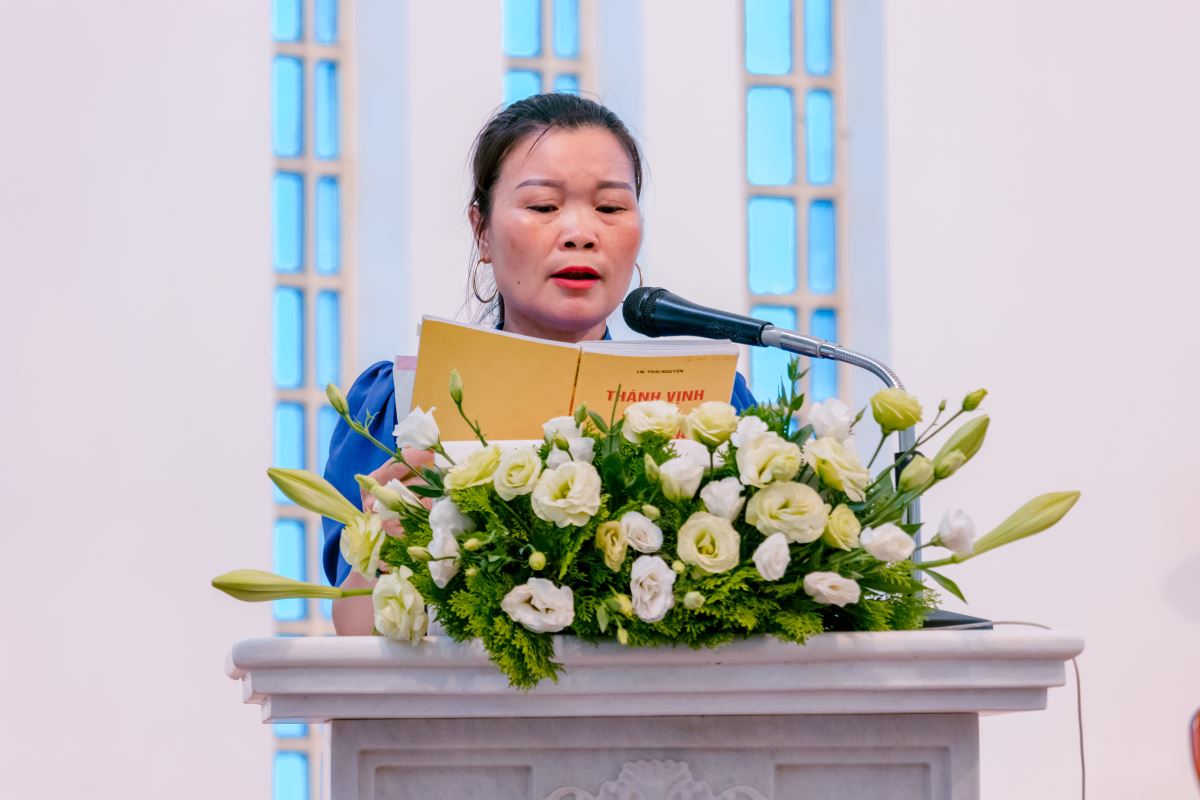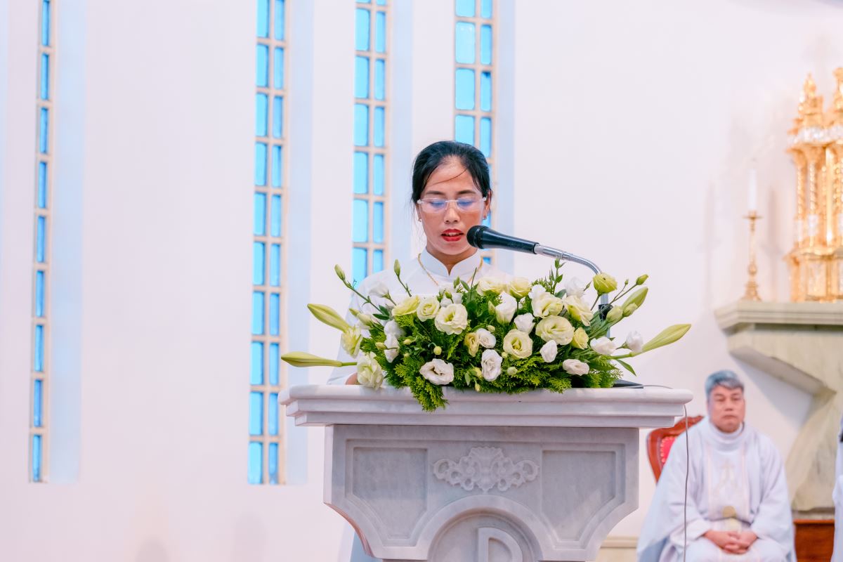 Thánh lễ kết thúc lúc 11g00. Trước khi kết thúc, chị Trưởng Hội đoàn đã thay lời toàn thể hội viên, dâng lời tri ân quý cha và cảm ơn tất cả các hội viên đã nhiệt tâm, quảng đại tham dự và đóng góp tích cực cho ngày hành hương. Đại diện cho các hội viên bày tỏ tâm tình tri ân |