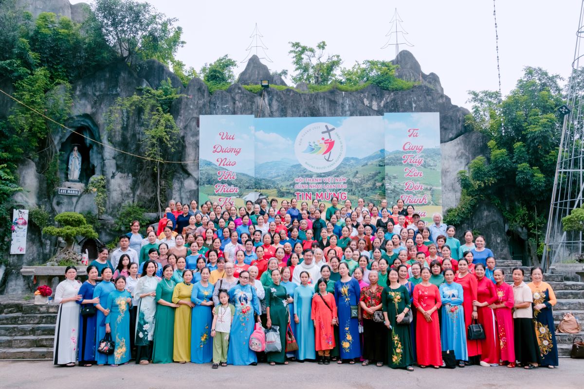 Trước khi ra về, các hội viên cùng nhau chụp hình lưu niệm tại hang đá Đức Mẹ, ghi lại dấu ấn đầy ân sủng của một ngày hành hương trọn vẹn.
