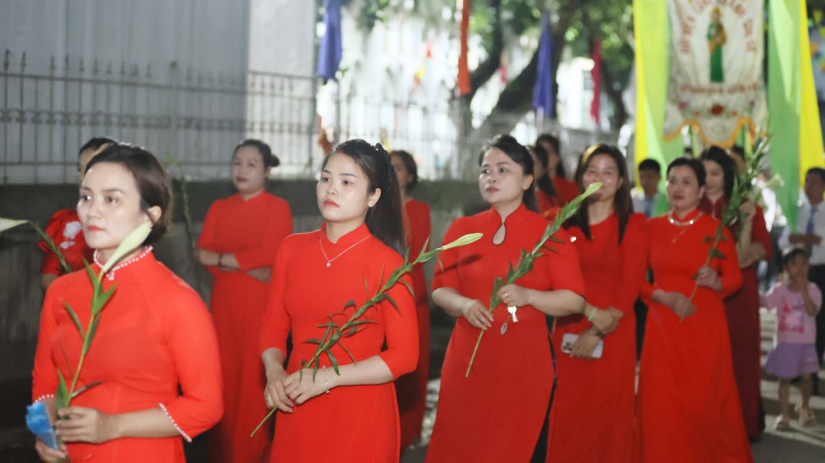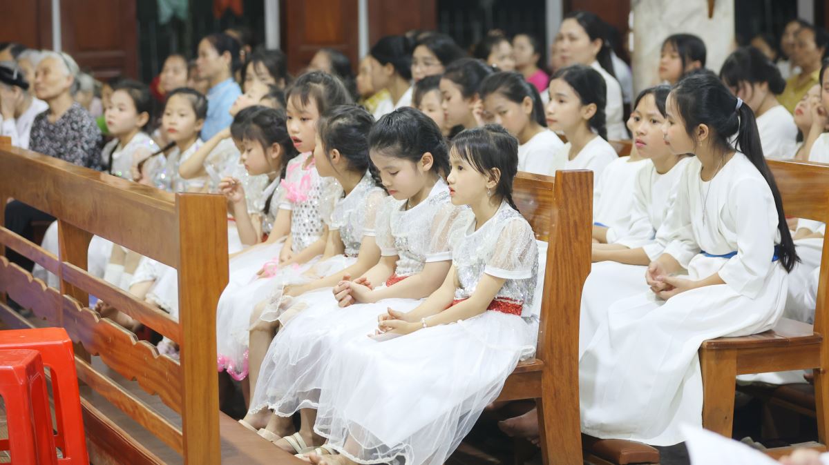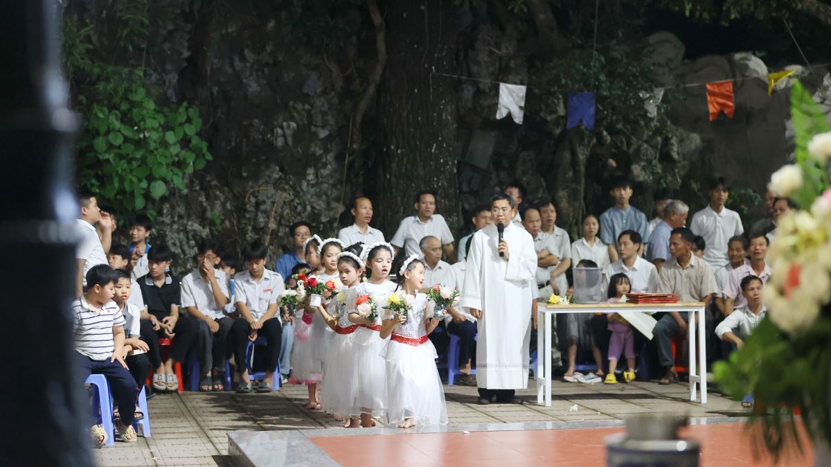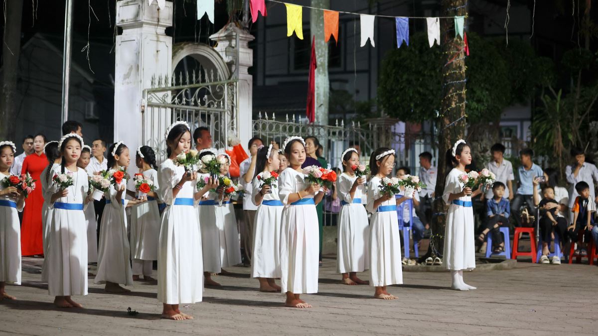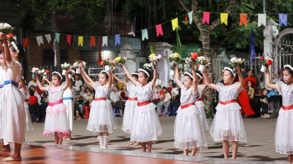Hôm nay cũng là ngày đầu của tháng hoa dâng kính Mẹ, vào lúc 19g30 các em thiếu nhi đã dâng lên Mẹ những bông hoa, ánh nến, điệu múa với tất cả lòng thành để tôn kính và yêu mến Mẹ.