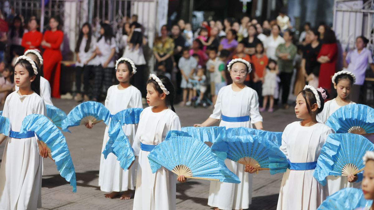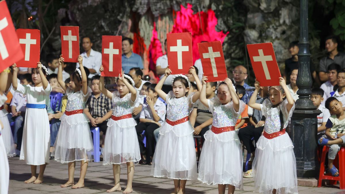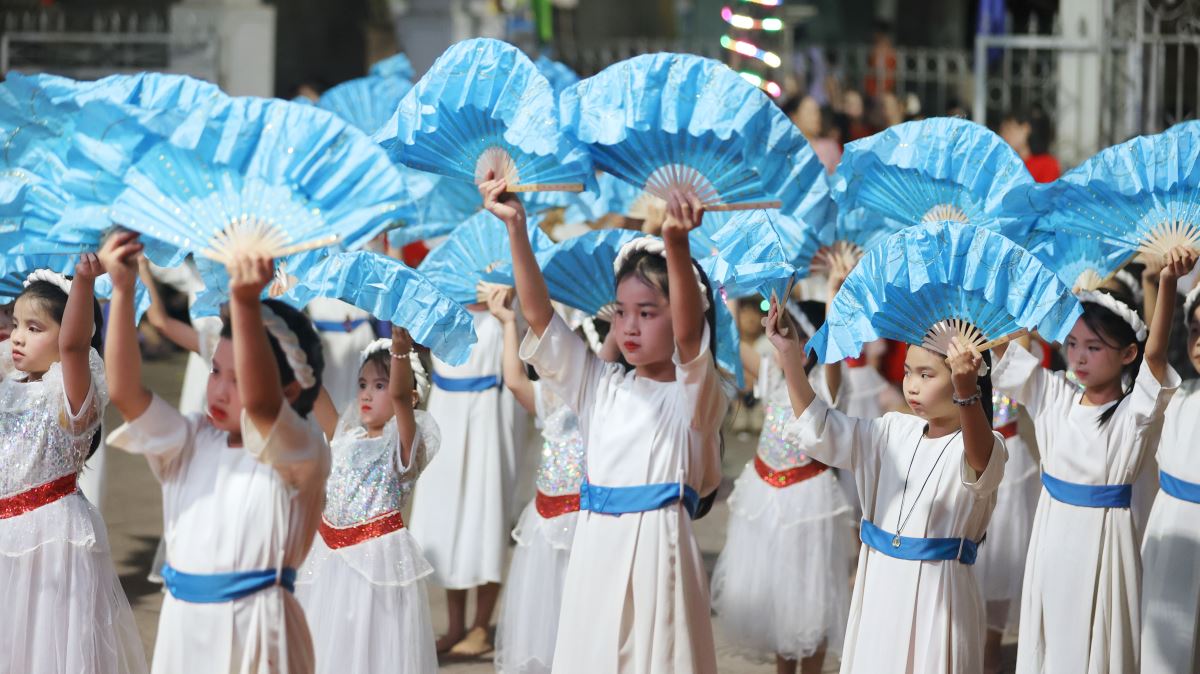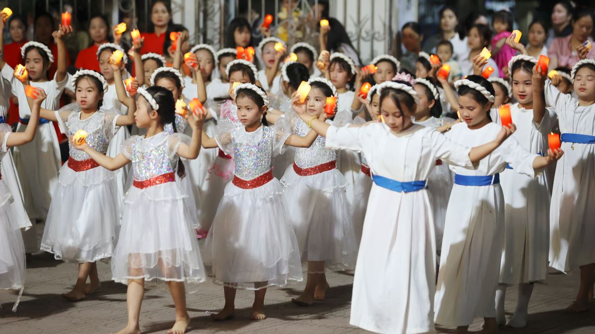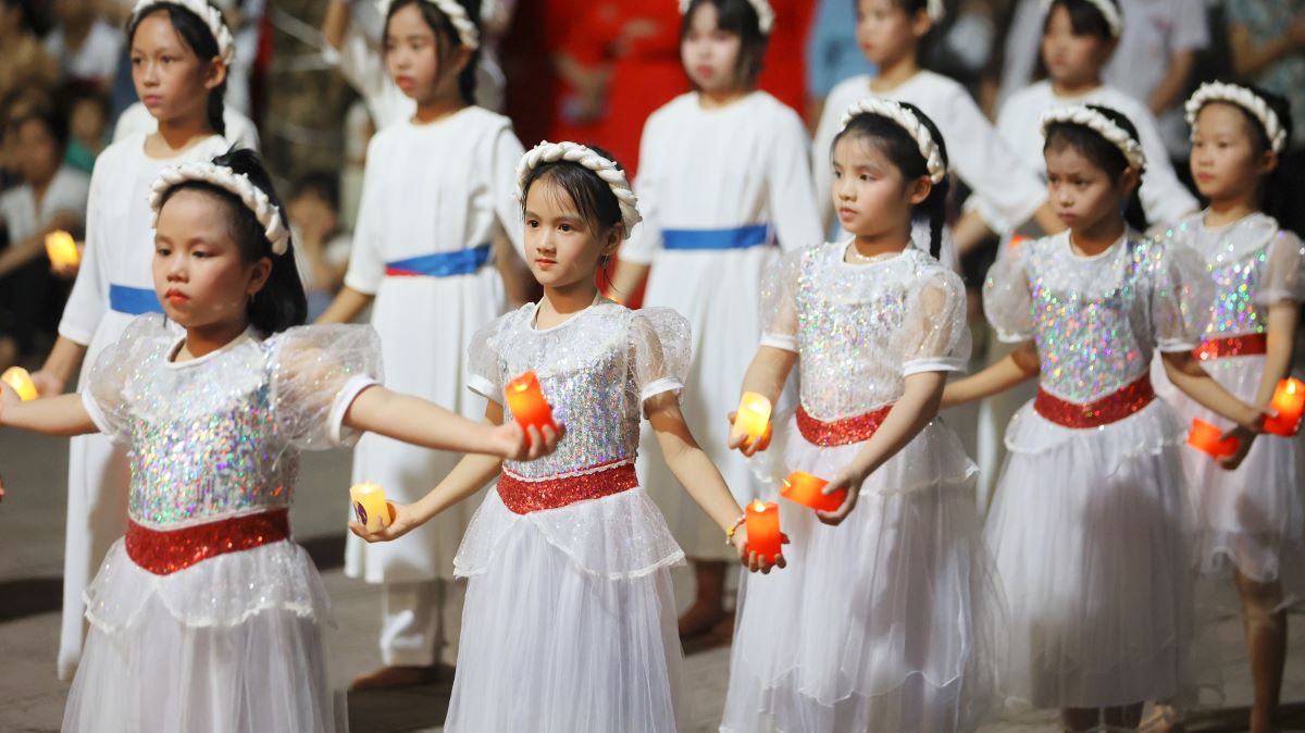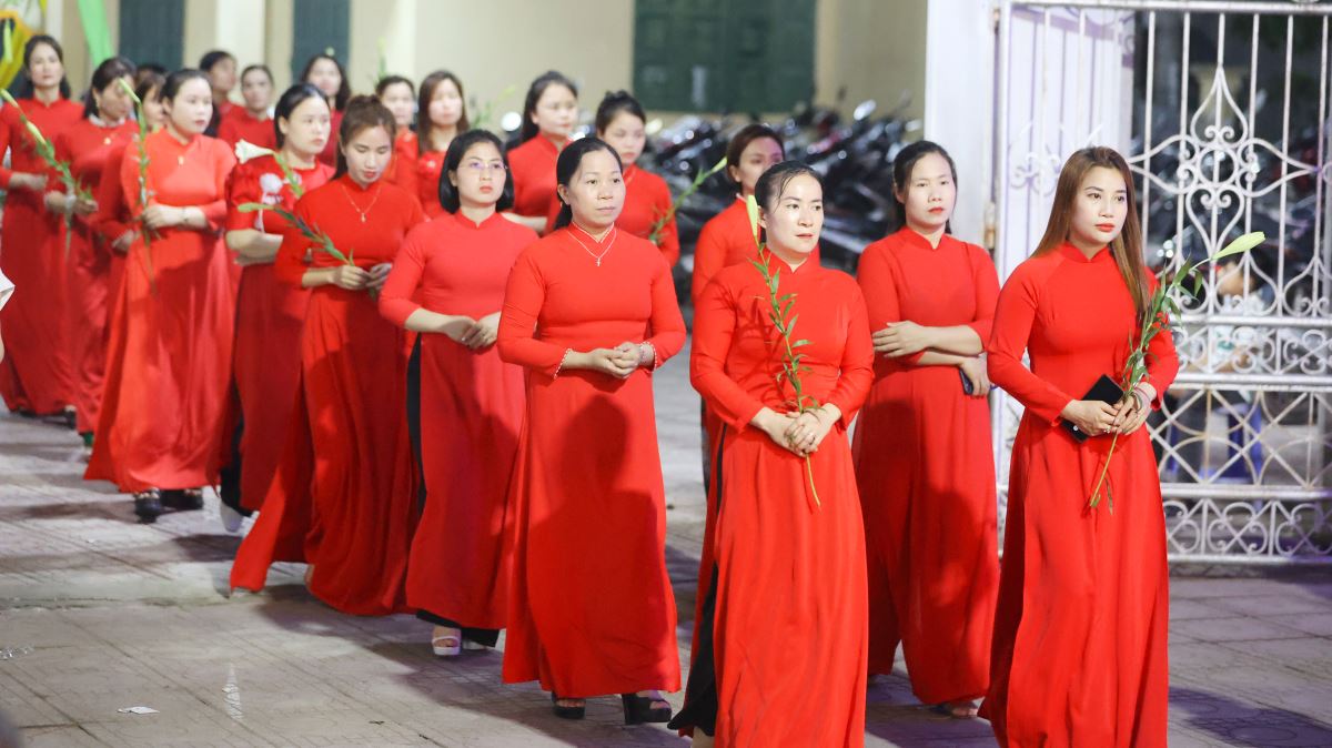 Hôm nay cũng là ngày đầu của tháng hoa dâng kính Mẹ, vào lúc 19g30 các em thiếu nhi đã dâng lên Mẹ những bông hoa, ánh nến, điệu múa với tất cả lòng thành để tôn kính và yêu mến Mẹ.