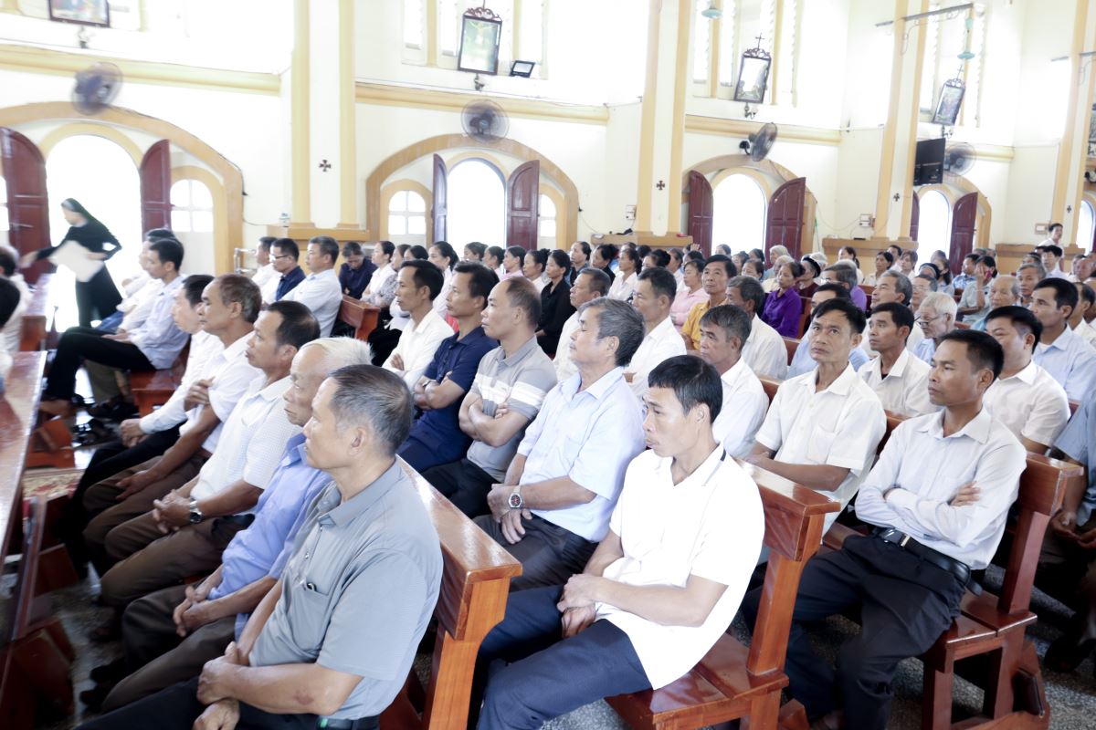 Đúng 7g30, cộng đoàn tập trung tại sảnh Nhà Giáo lý tham dự nghi thức khởi sự do Cha Giuse Đặng Đức Súy chủ sự.
