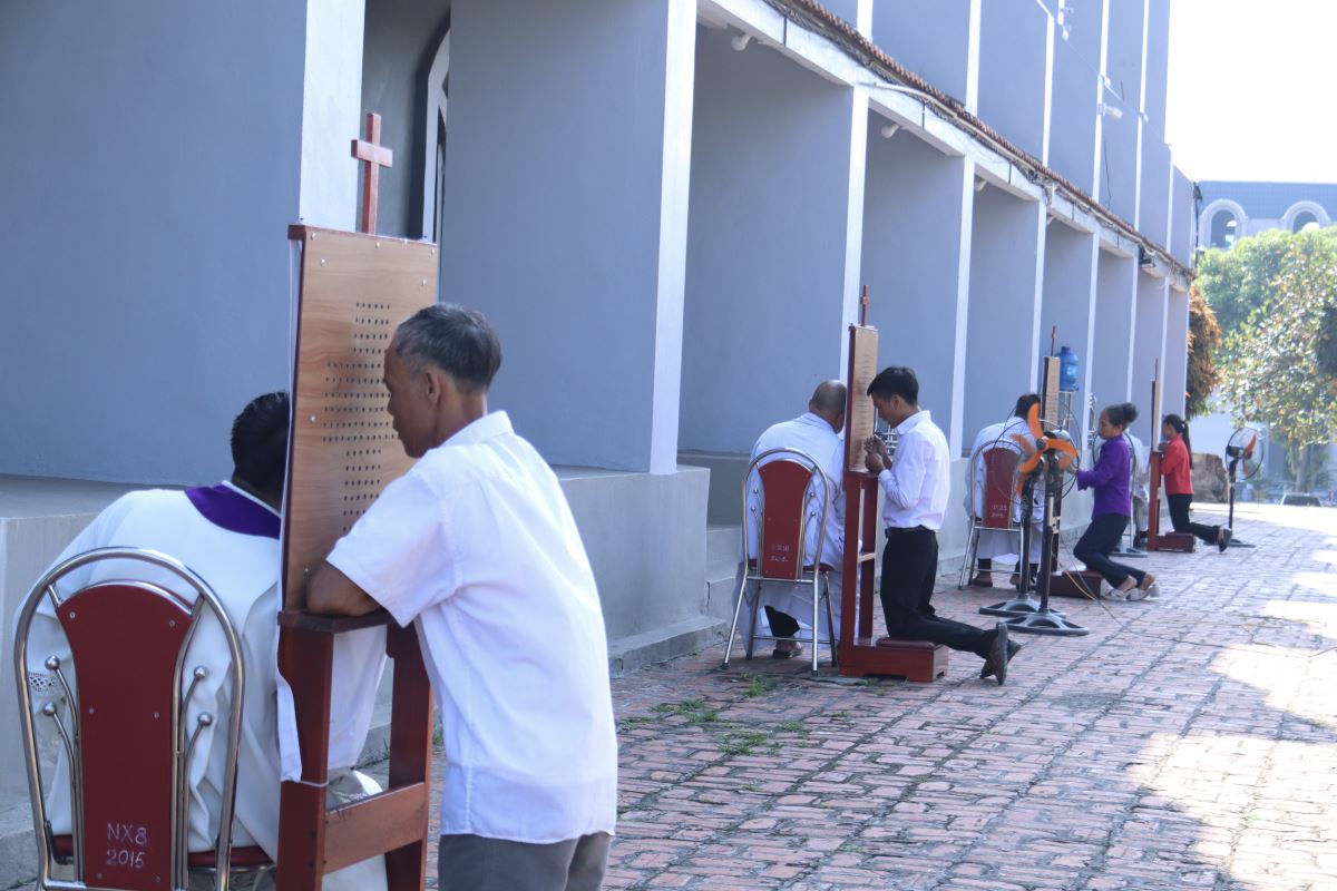 Trong bầu khí sốt sắng, cộng đoàn hân hoan tiến vào thánh đường để bước vào giờ tĩnh tâm – xét mình do quý Dì Dòng Mến Thánh Giá hướng dẫn, chuẩn bị tâm hồn lãnh nhận bí tích Hòa giải.
