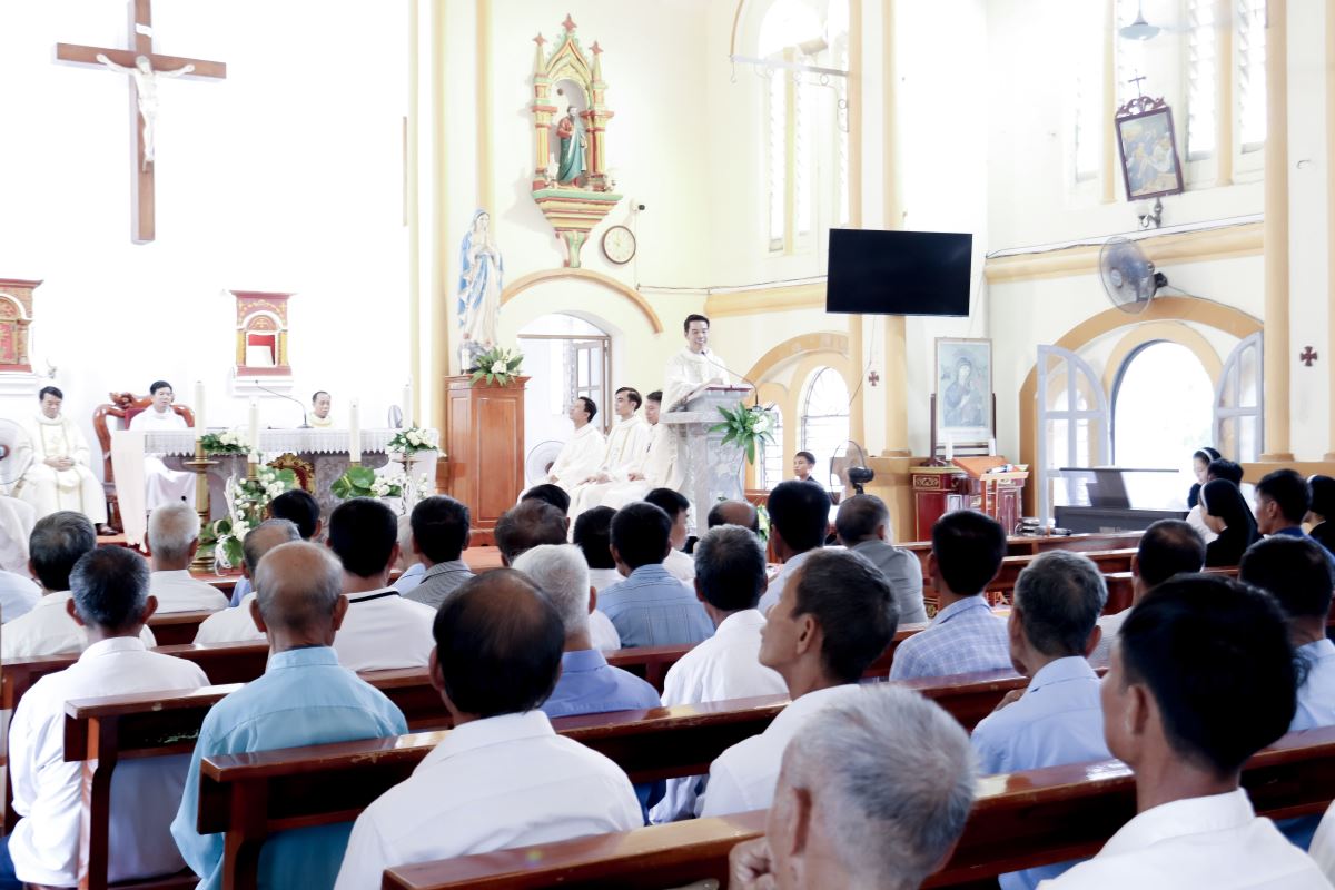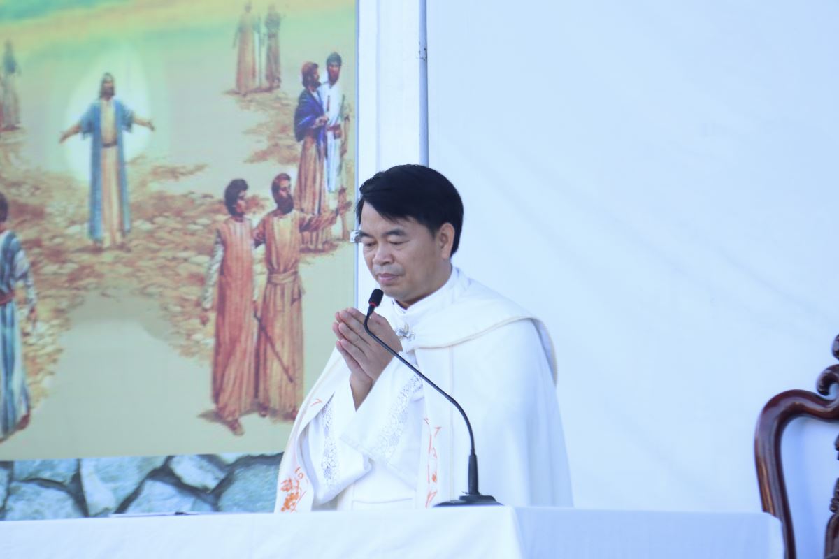 Trong phần giảng lễ, Cha Tôma Aquinô Trần Văn Miền nhấn mạnh nét độc đáo: dù hôm nay là ngày hành hương của các gia trưởng, nhưng bài Tin Mừng lại nhắc đến những người phụ nữ, những chứng nhân trung thành đã theo Chúa đến tận Thập Giá và loan báo Tin Mừng Phục Sinh.