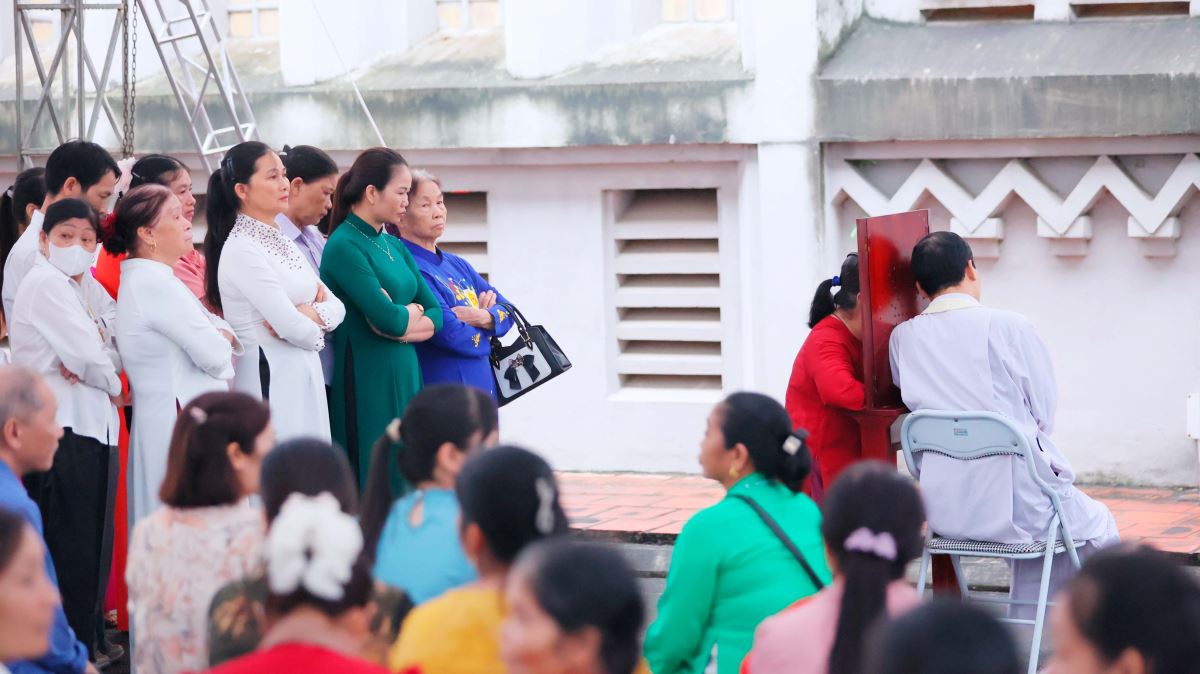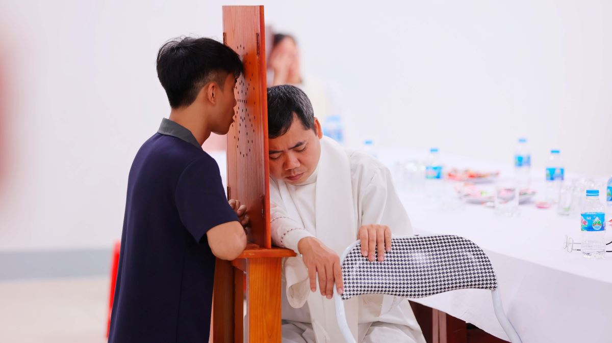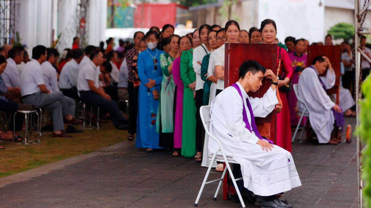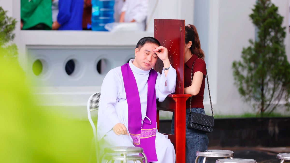 Song song với các giờ chia sẻ, các cha trong giáo hạt Sơn Tây đã ngồi tòa giải tội, giúp các hối nhân giao hòa cùng Thiên Chúa, chuẩn bị tâm hồn xứng đáng cho Thánh lễ trọng thể trong ngày hành hương.