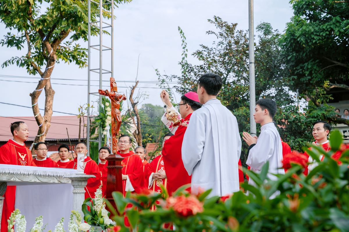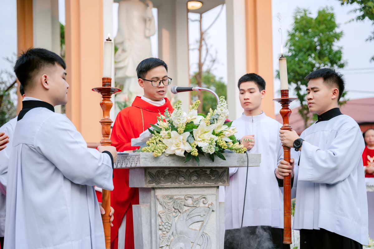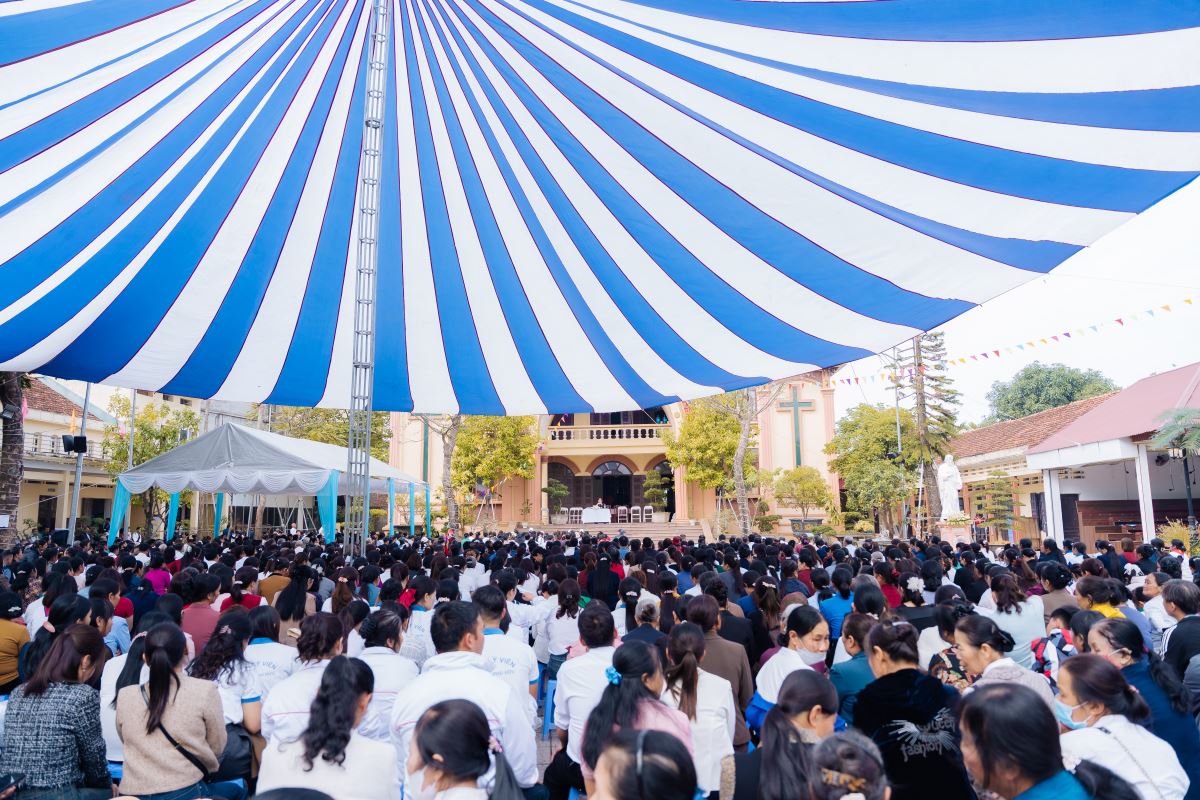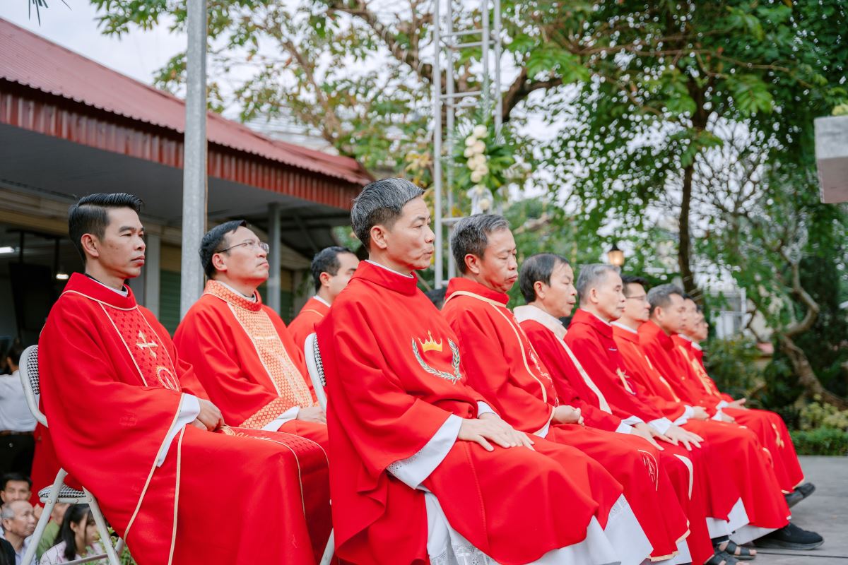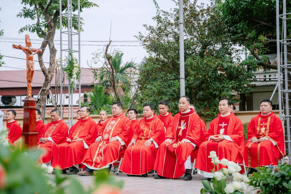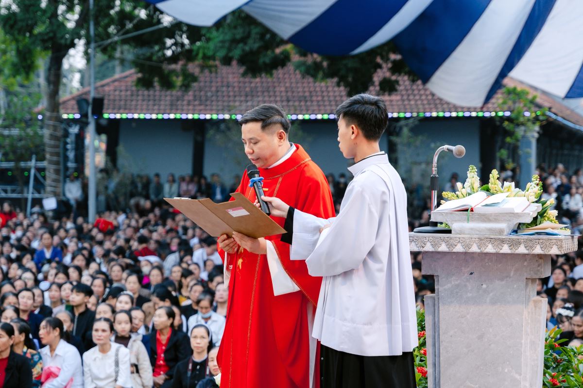 Trong bài giảng, Đức cha làm nổi bật nhân đức khôn ngoan của Thánh Phêrô Vũ Văn Truật – vị thầy giảng trẻ tuổi đã hiến trọn đời mình cho Thiên Chúa. Sự khôn ngoan ấy không chỉ thể hiện nơi lời nói đầy xác tín khi ngài dùng miệng lưỡi để làm chứng cho chân lý, nhưng còn được biểu lộ qua những chọn lựa dứt khoát trong đời sống, khi thánh nhân chọn Chúa làm phần gia nghiệp duy nhất của mình. Đỉnh cao của sự khôn ngoan ấy chính là lòng trung tín đến cùng, được thể hiện qua việc can đảm vác thánh giá và sẵn sàng hy sinh mạng sống vì đức tin. Từ gương sáng của thánh bổn mạng, Đức cha mời gọi cộng đoàn, cách riêng các giáo lý viên hôm nay biết chọn Chúa làm lẽ sống, trung thành với đức tin và can đảm sống Tin Mừng, để trở nên những chứng nhân sống động cho thế hệ trẻ.