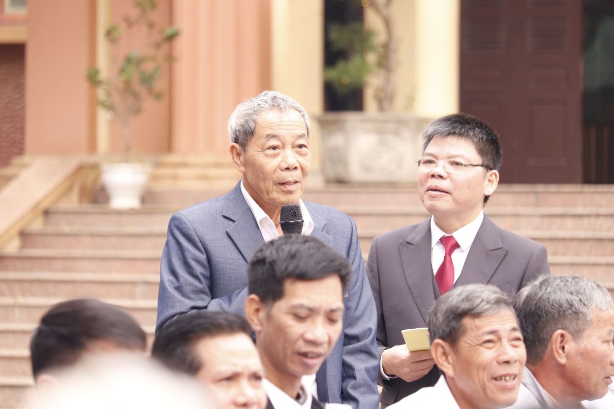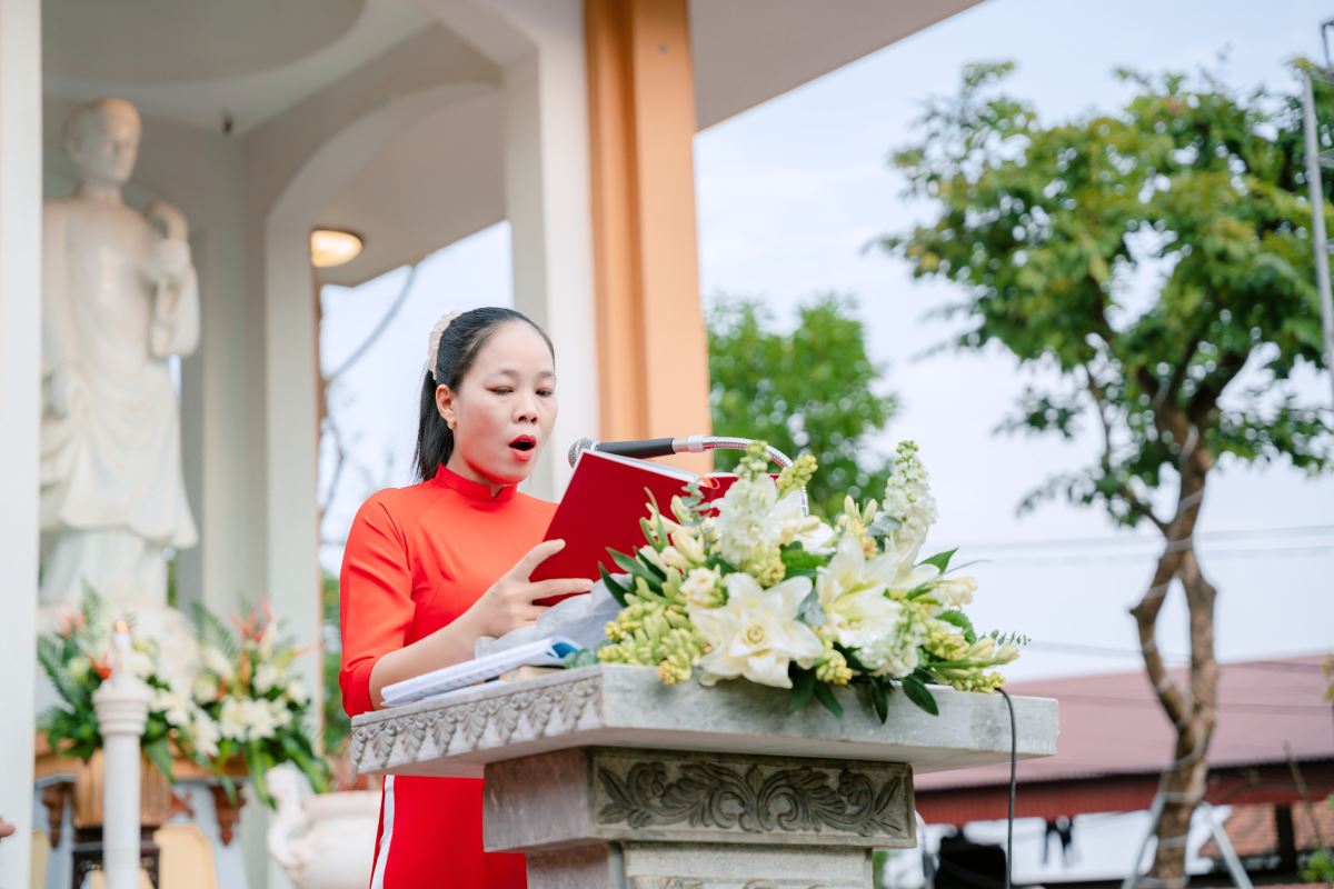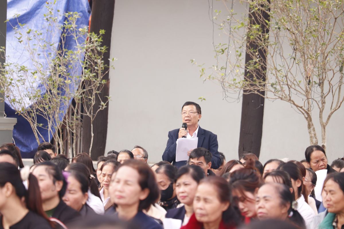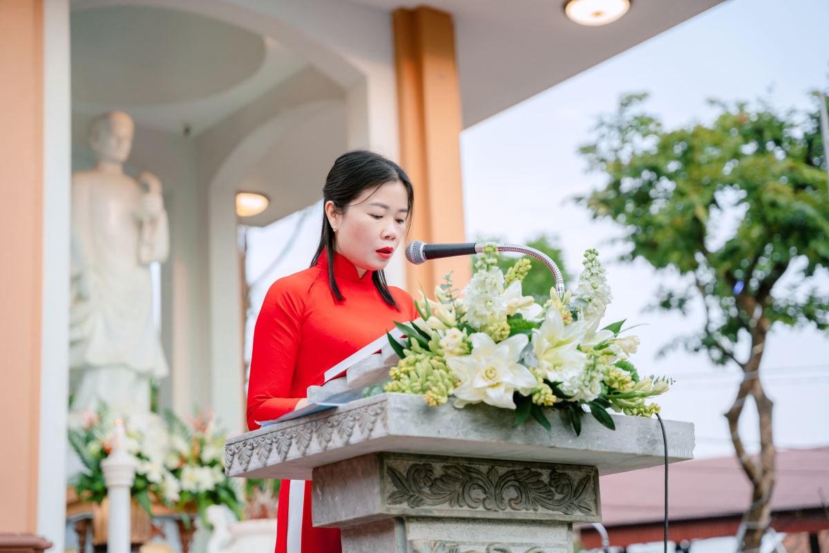 Sau lời nguyện hiệp lễ, cha Giuse Dương Quốc Chí, Phó Chủ tịch UBGLĐT, đại diện bày tỏ tâm tình tri ân quý Đức cha, quý cha, quý tu sĩ và toàn thể cộng đoàn đã luôn quan tâm, đồng hành và nâng đỡ công tác giáo lý của Giáo phận. Cách riêng, cha gửi lời cảm ơn chân thành đến các giáo lý viên, những người đang âm thầm dấn thân và bền bỉ phục vụ trong sứ vụ gieo mầm đức tin nơi các thế hệ trẻ. Cha cũng bày tỏ lòng tri ân đến Giáo hạt và Giáo xứ đăng cai đã chu đáo sắp xếp, tạo điều kiện để ngày hội được diễn ra tốt đẹp và đầy ý nghĩa.