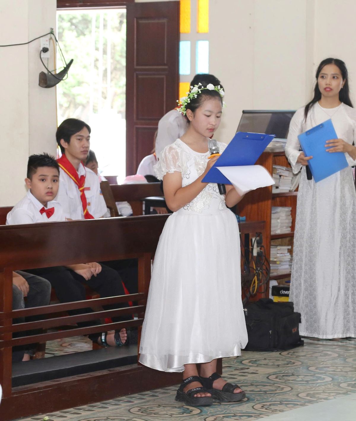 Cuối Thánh lễ, một em đại diện đã dâng lời cảm ơn cha phó, quý dì, quý thầy cô giáo lý viên, các huynh trưởng, Ban hành giáo, cha mẹ và cộng đoàn đã quan tâm, hướng dẫn và chuẩn bị chu đáo để các em có được ngày lễ sốt sắng và long trọng này.