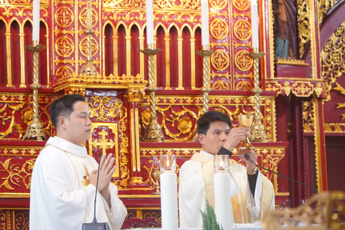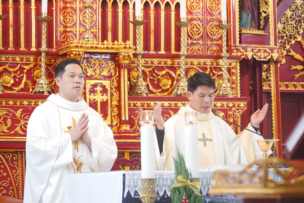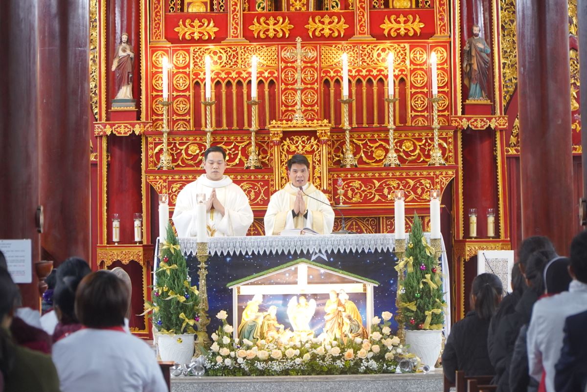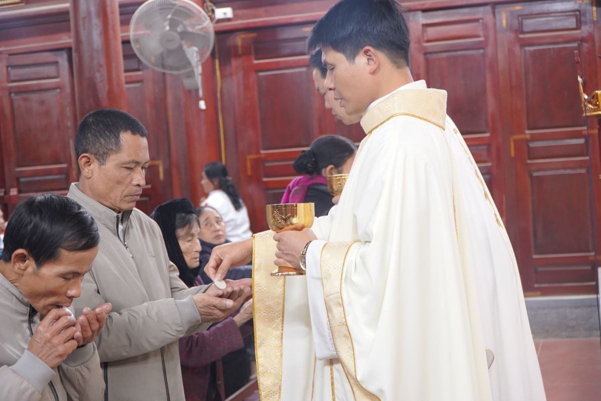 Thánh lễ do Cha bản hương Phêrô Nguyễn Văn Sơn – Trưởng ban Giáo lý Đức Tin Giáo hạt Tây Nam Phú Thọ chủ tế. Đồng tế với ngài có Cha phó Phanxicô Xaviê Lê Văn Tiến, đặc trách Giáo lý Giáo xứ. Hiệp dâng Thánh lễ còn có Thầy xứ Gioan Hồ Văn Chục, quý Dì cộng đoàn MTG Hoàng Xá và đông đảo cộng đoàn dân Chúa.
