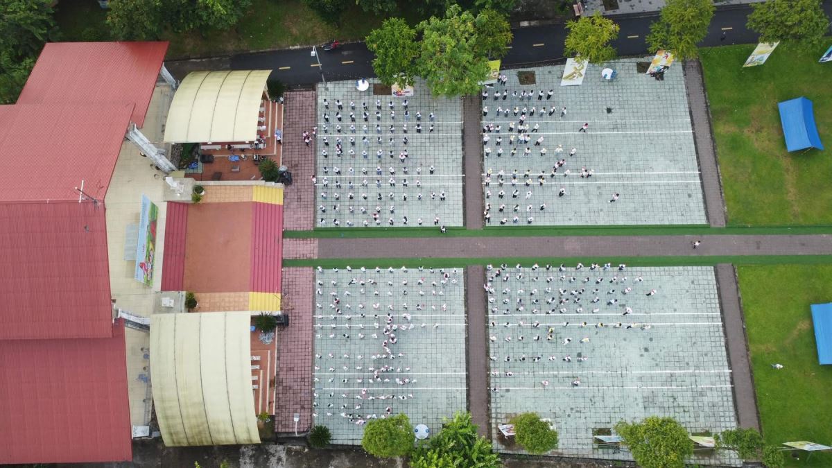 Ở phần Nghiêm tập, các em thể hiện sự đồng đều, kỷ luật qua các động tác điều lệnh, chạy đội hình theo nhiều kiểu khác nhau, giữ nghiêm trong suốt quá trình thực hiện.