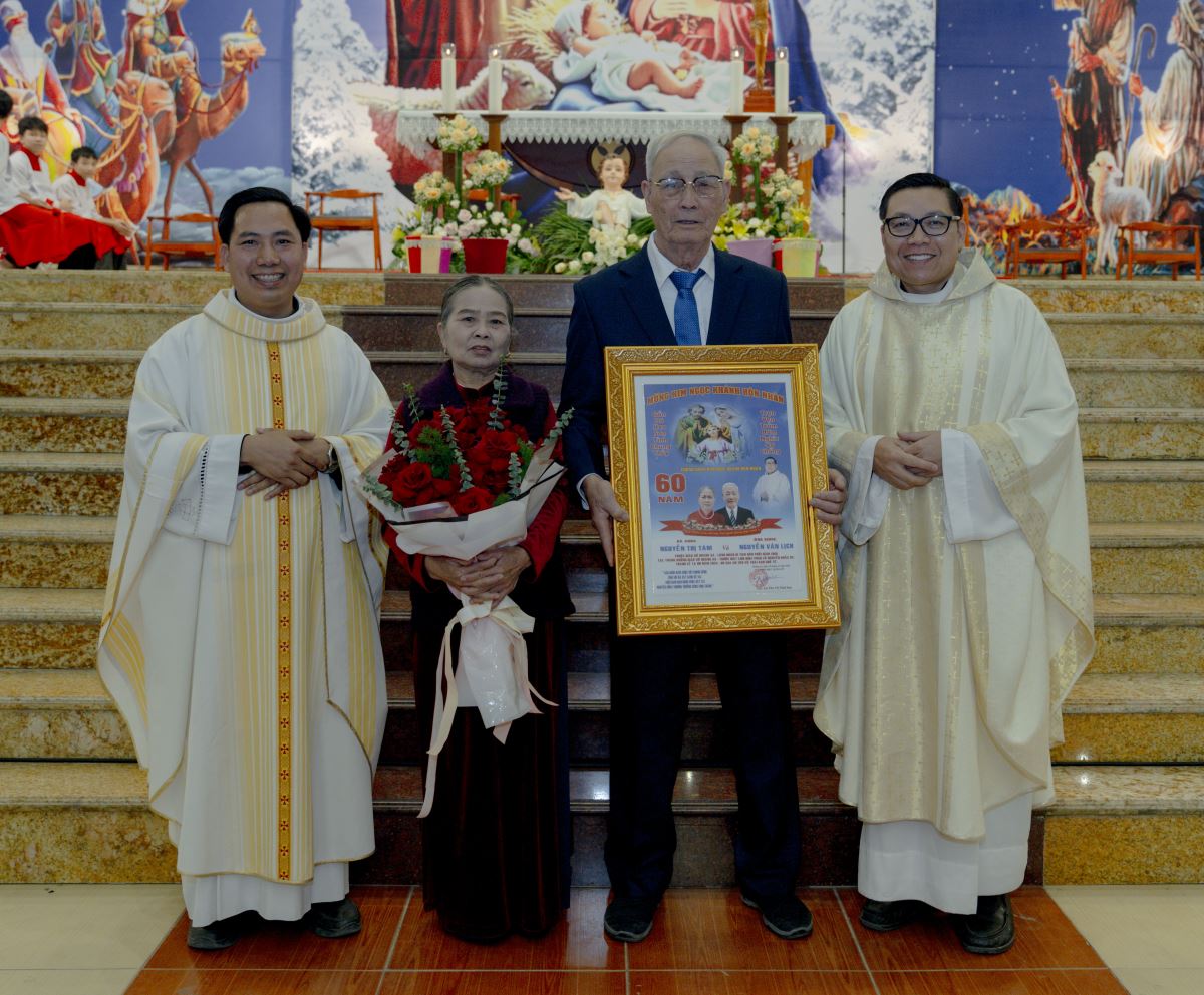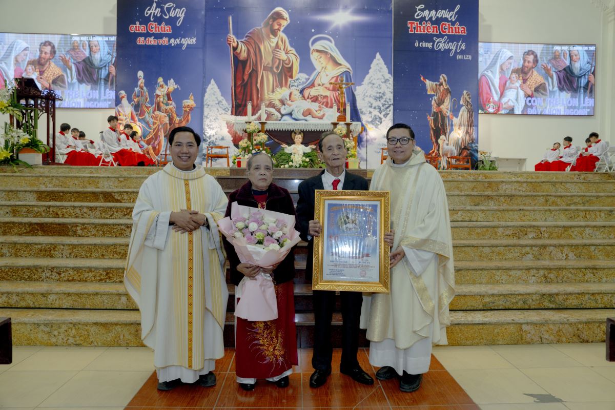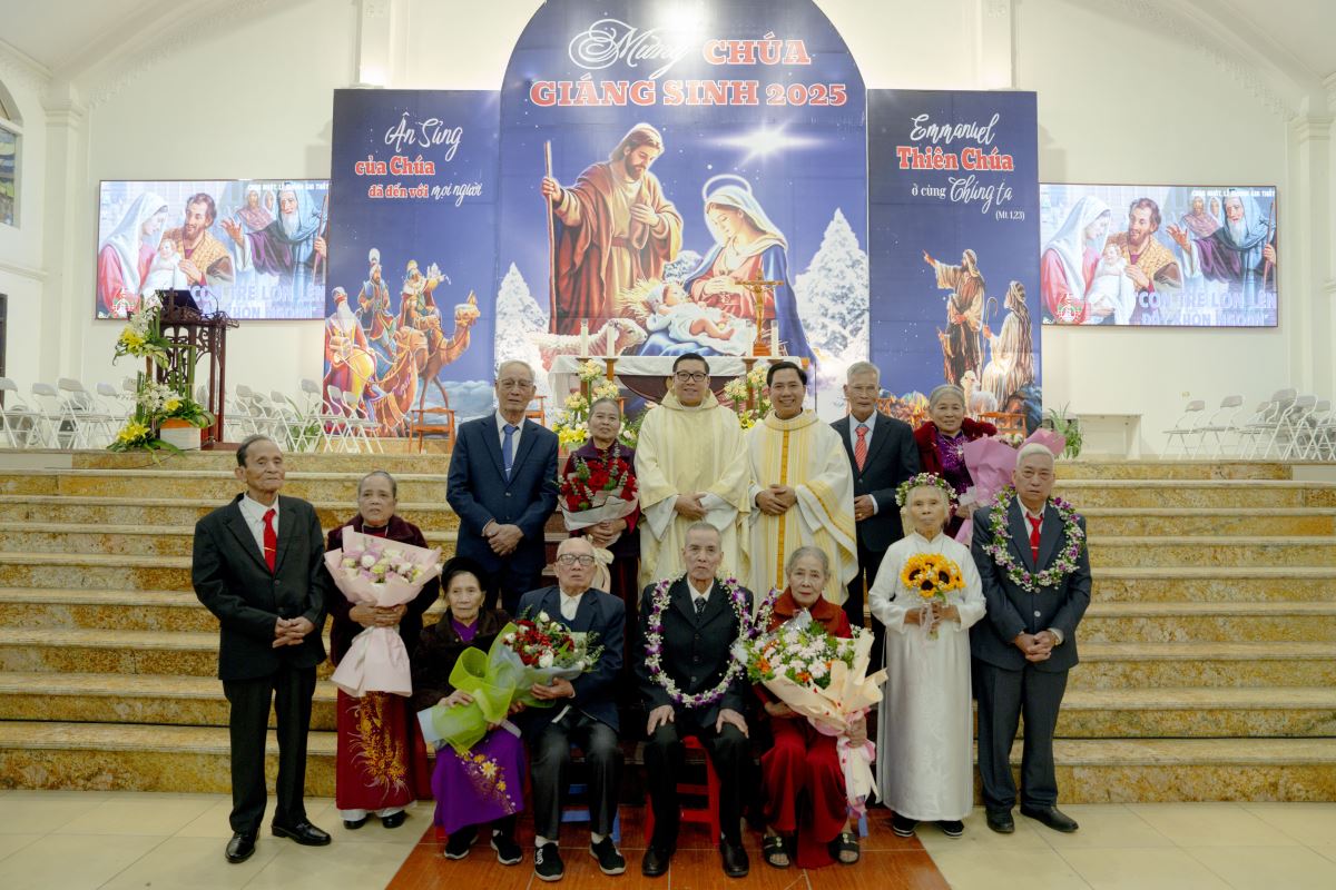 Trong bài giảng, Cha Giuse đã chia sẻ rất sâu sắc về tình nghĩa vợ chồng, qua đó nhấn mạnh rằng đời sống gia đình là một hành trình dài, đầy hy vọng nhưng cũng không thiếu những gian truân, thử thách; gia đình không phải là nơi hoàn hảo, nhưng là nơi các thành viên cùng nhau vượt qua những sóng gió của cuộc đời; và ngay cả gia đình Thánh Gia Nadarét cũng đã trải qua biết bao khó khăn, bấp bênh, nhưng nhờ có Chúa ở cùng, có tình yêu và sự tín thác nơi Thiên Chúa, gia đình nhỏ bé ấy vẫn luôn vững bền. Kết thúc bài giảng, Cha Giuse mời gọi mỗi người, mỗi gia đình, cách riêng là các đôi hôn nhân mừng kỷ niệm 50, 60 và 70 năm ngày cưới, hãy noi gương gia đình Thánh Gia, biết cùng nhau vượt qua giông tố cuộc đời, để mỗi gia đình trở nên một mái ấm Nadarét nhỏ bé, nơi Chúa luôn hiện diện và là trung tâm của đời sống gia đình cũng như của cộng đoàn giáo xứ.
