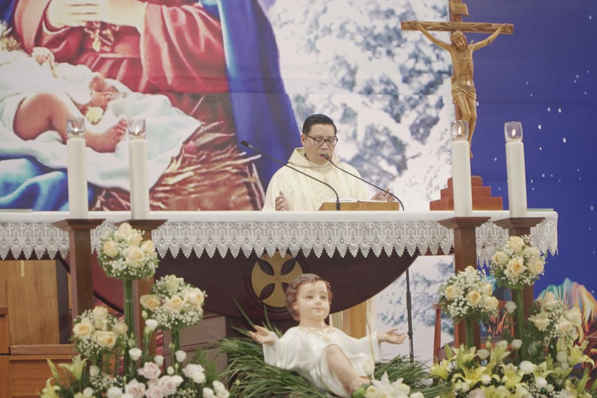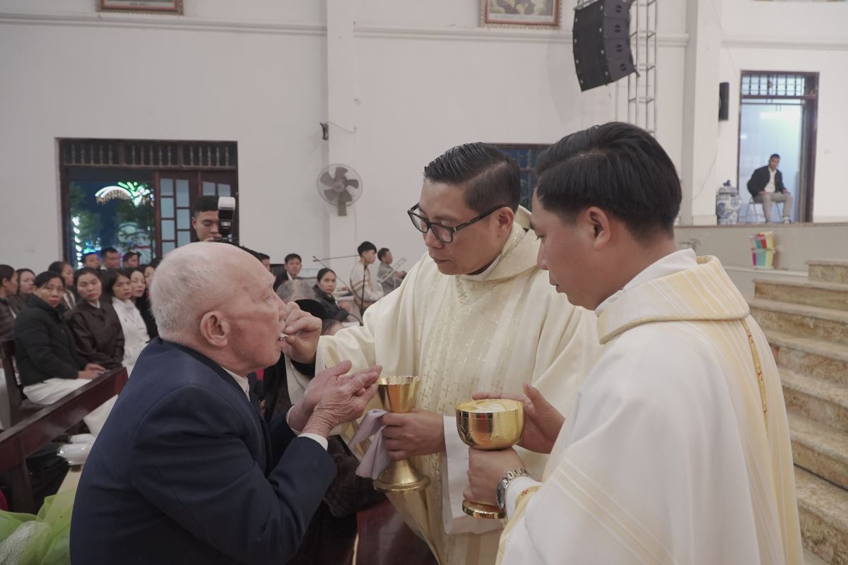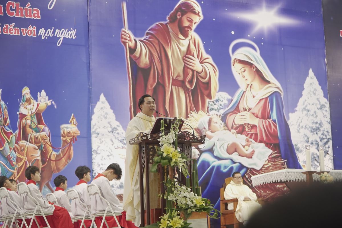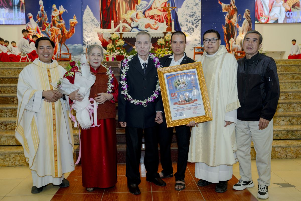 Trong bài giảng, Cha Giuse đã chia sẻ rất sâu sắc về tình nghĩa vợ chồng, qua đó nhấn mạnh rằng đời sống gia đình là một hành trình dài, đầy hy vọng nhưng cũng không thiếu những gian truân, thử thách; gia đình không phải là nơi hoàn hảo, nhưng là nơi các thành viên cùng nhau vượt qua những sóng gió của cuộc đời; và ngay cả gia đình Thánh Gia Nadarét cũng đã trải qua biết bao khó khăn, bấp bênh, nhưng nhờ có Chúa ở cùng, có tình yêu và sự tín thác nơi Thiên Chúa, gia đình nhỏ bé ấy vẫn luôn vững bền. Kết thúc bài giảng, Cha Giuse mời gọi mỗi người, mỗi gia đình, cách riêng là các đôi hôn nhân mừng kỷ niệm 50, 60 và 70 năm ngày cưới, hãy noi gương gia đình Thánh Gia, biết cùng nhau vượt qua giông tố cuộc đời, để mỗi gia đình trở nên một mái ấm Nadarét nhỏ bé, nơi Chúa luôn hiện diện và là trung tâm của đời sống gia đình cũng như của cộng đoàn giáo xứ.