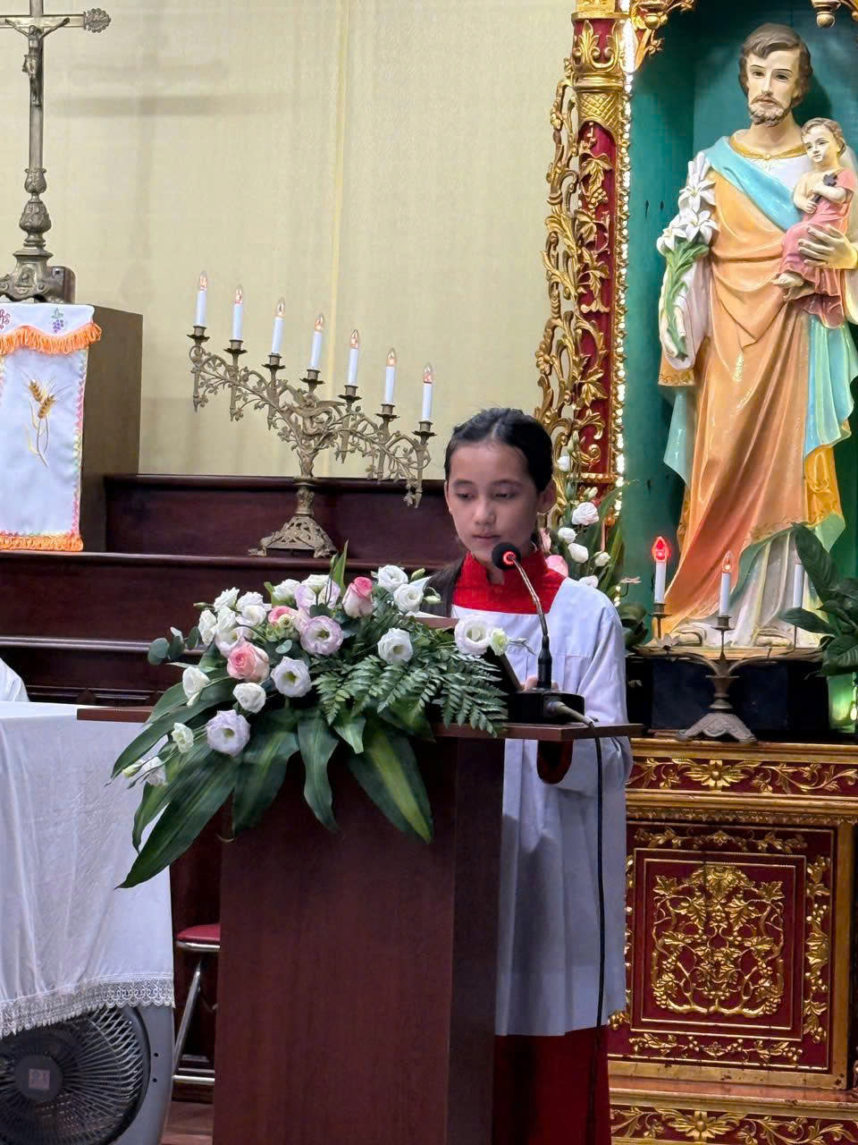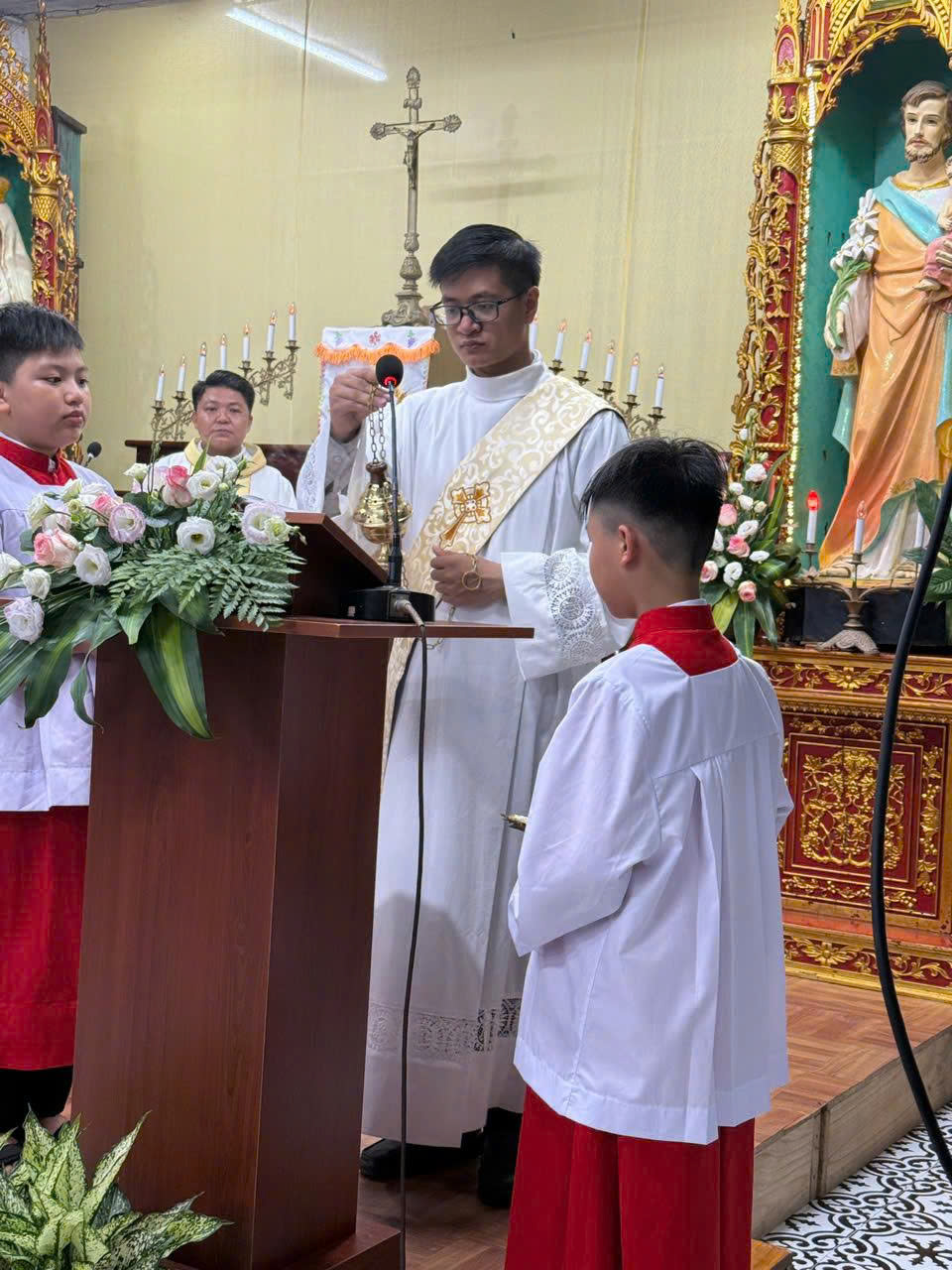 Trước khi kết thúc Thánh lễ, đại diện phụ huynh và các em lễ sinh đã dâng lời tri ân tới quý cha, quý dì, quý phụ huynh và cộng đoàn, đặc biệt là cám ơn thầy Phó tế đã luôn hướng dẫn, dạy bảo các em trong các dịp thường huấn lễ sinh, để các em gia tăng tinh thần đạo đức và tư cách của người phục vụ bàn thánh, cùng chúc mừng thầy Phó tế Antôn trong ngày lễ Bổn mạng của ngài.